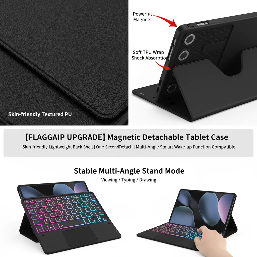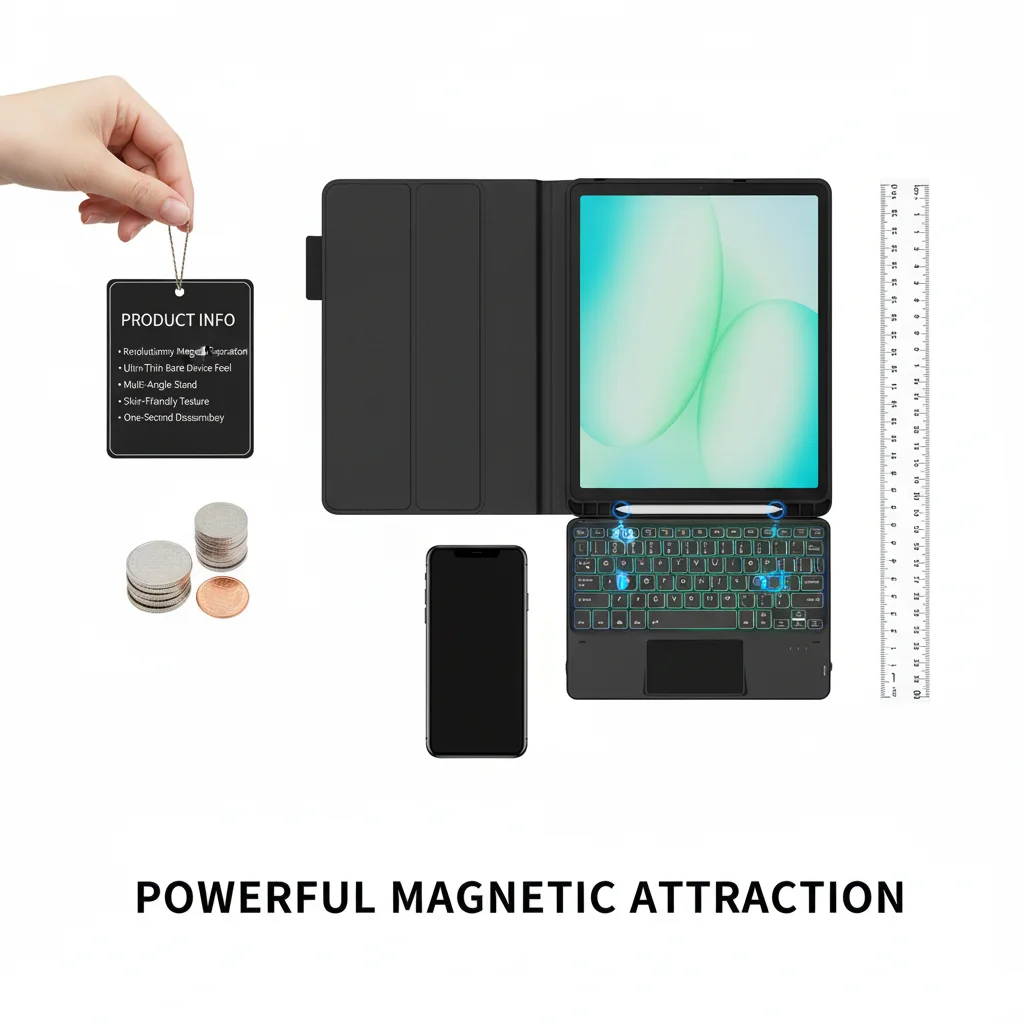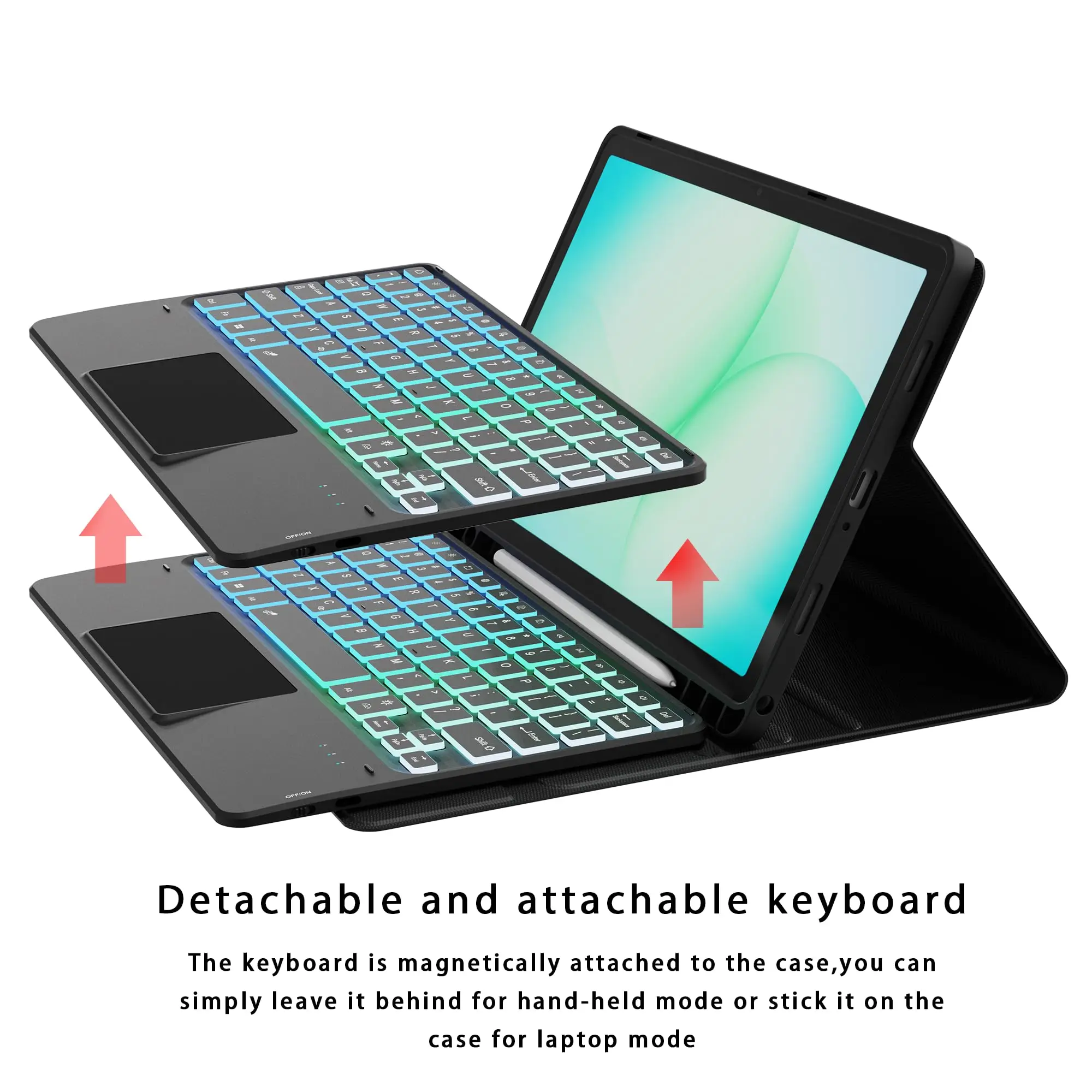 Funda con teclado mágico con panel táctil magnético retroiluminado desmontable y ranura para S-Pen para Samsung Galaxy Tab A9+ 2023/A11+ 2025 5G Laudtec