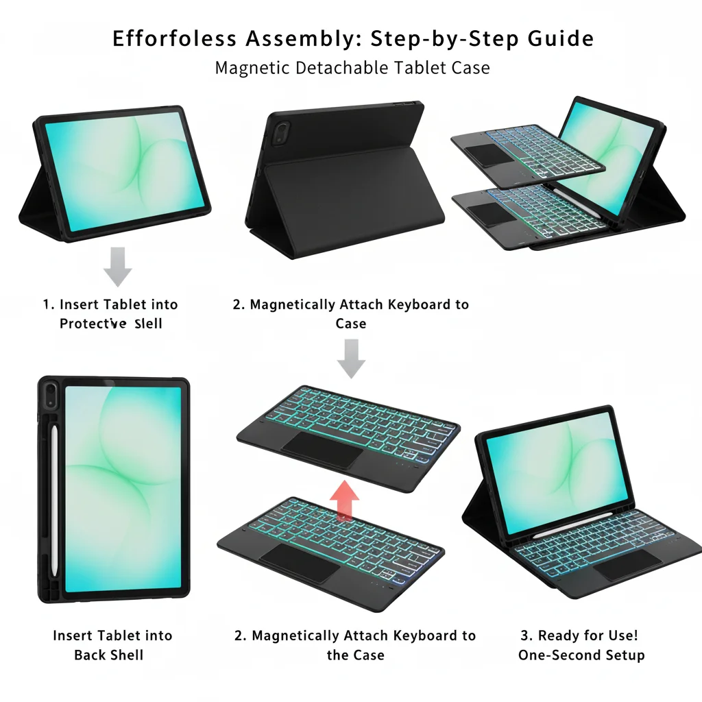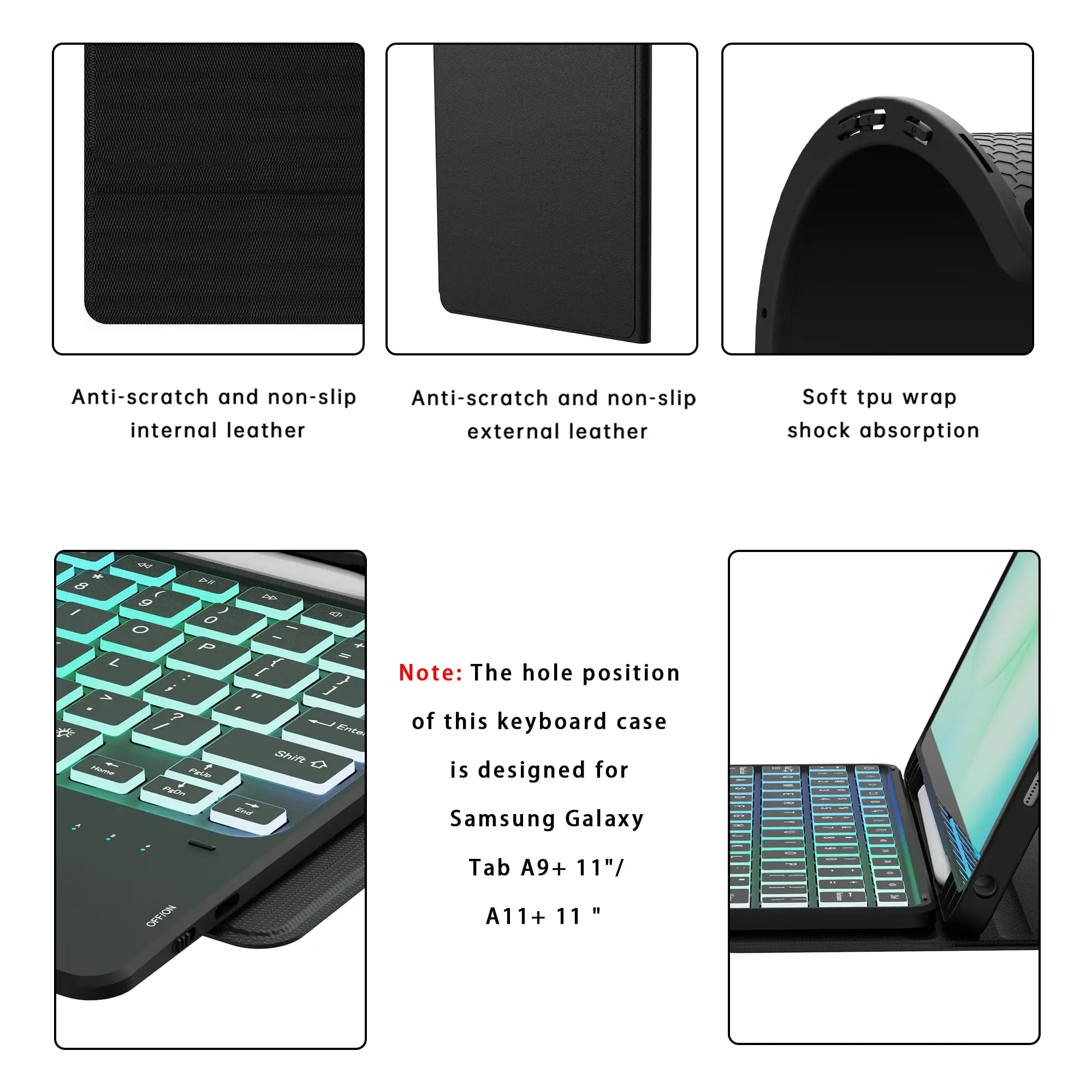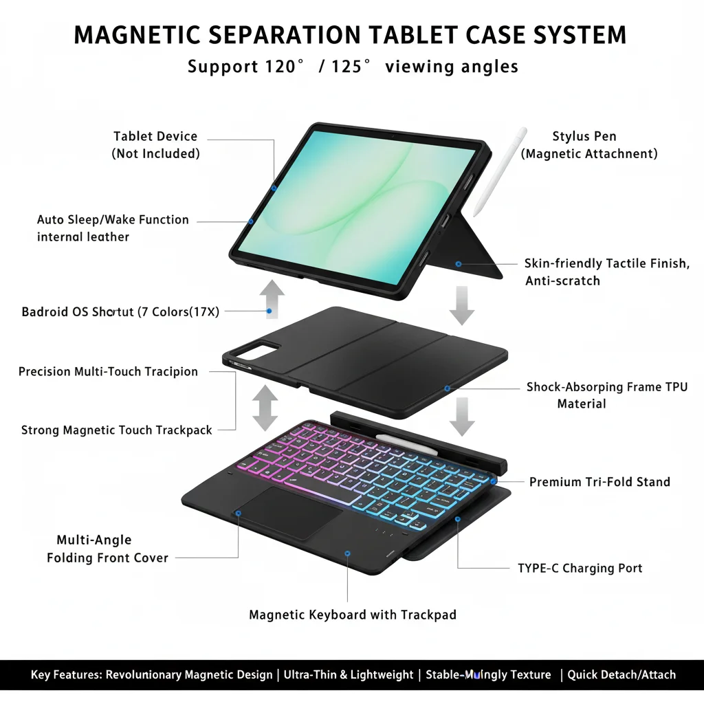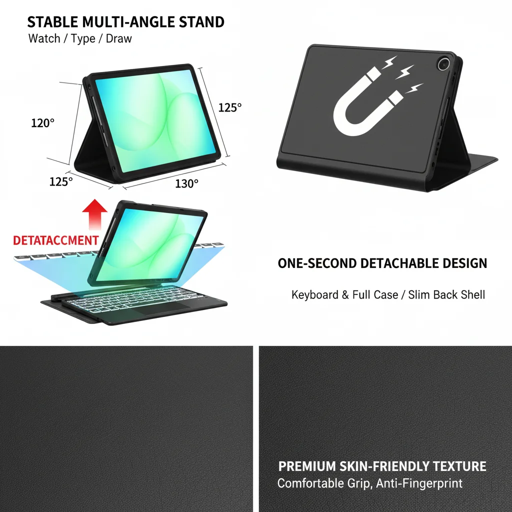 Funda con teclado mágico con panel táctil magnético retroiluminado desmontable y ranura para S-Pen para Samsung Galaxy Tab A9+ 2023/A11+ 2025 5G Laudtec
