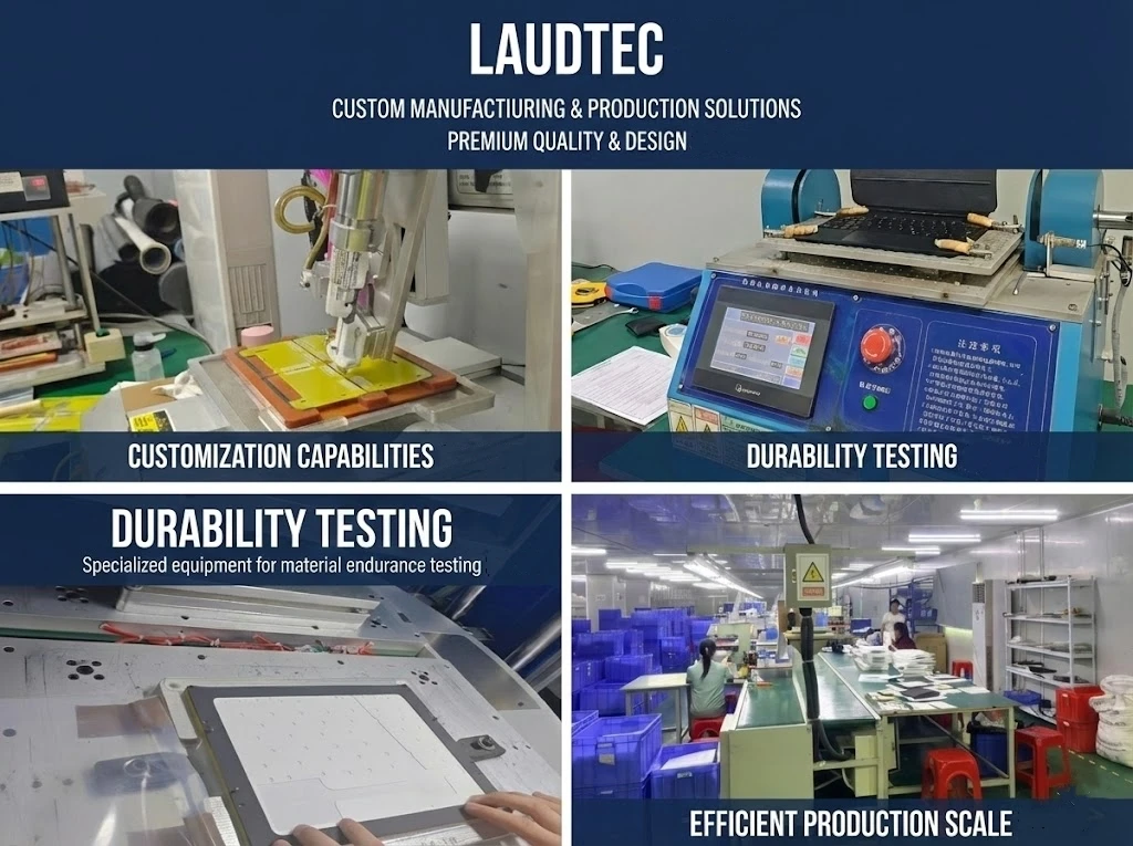 2) Amplio espectro de personalización: Esto va más allá de los logotipos. Personalizamos materiales (incluyendo opciones sostenibles como PU a base de biocomponentes), acabados, integraciones funcionales (por ejemplo, mecanismos de bisagra únicos para teclados), embalaje e incluso firmware para accesorios inteligentes.