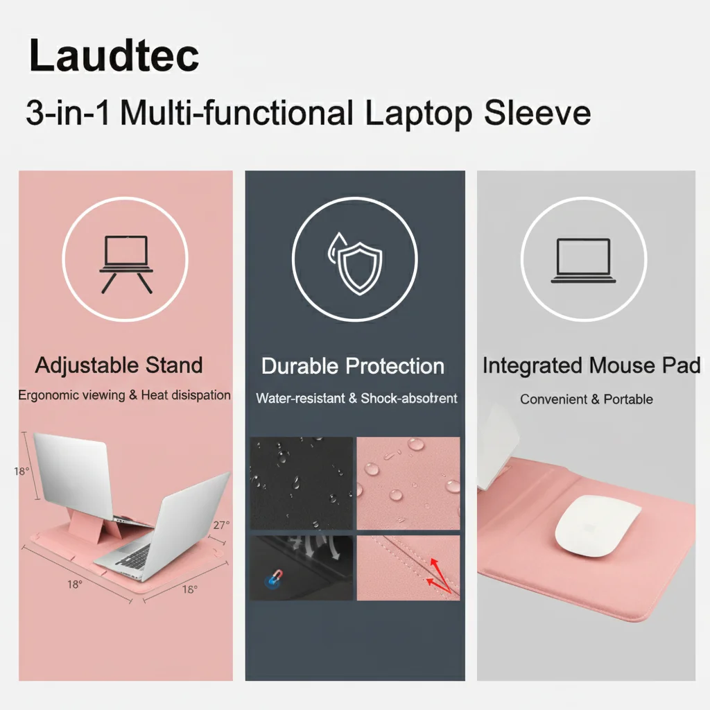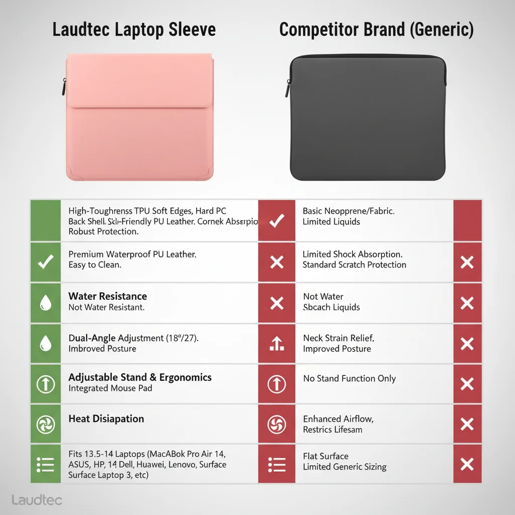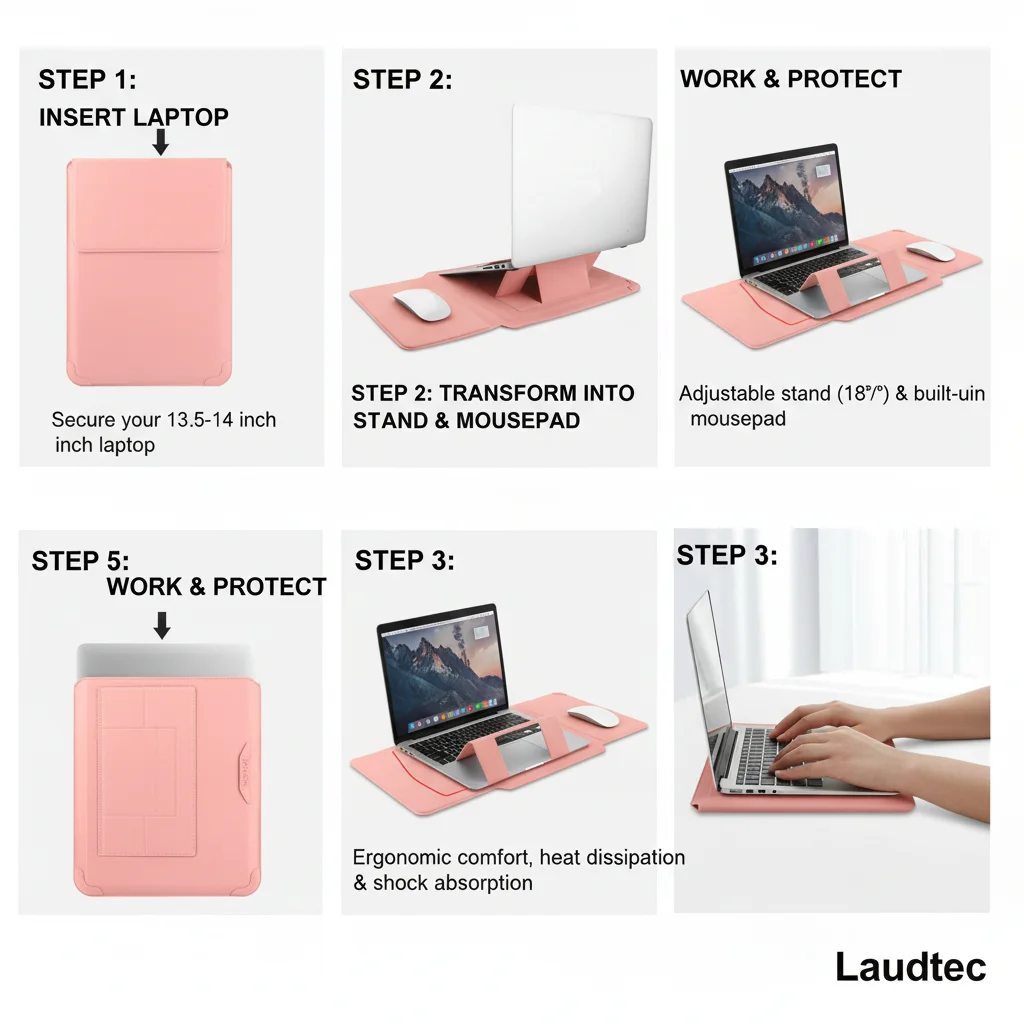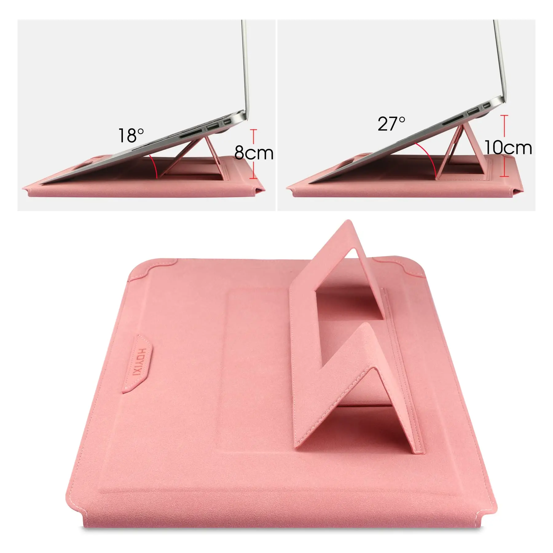 Funda para portátil al por mayor de fábrica, alta calidad, OEM/ODM, funda de cuero PU con ángulo ajustable y soporte, 14'', color rosa