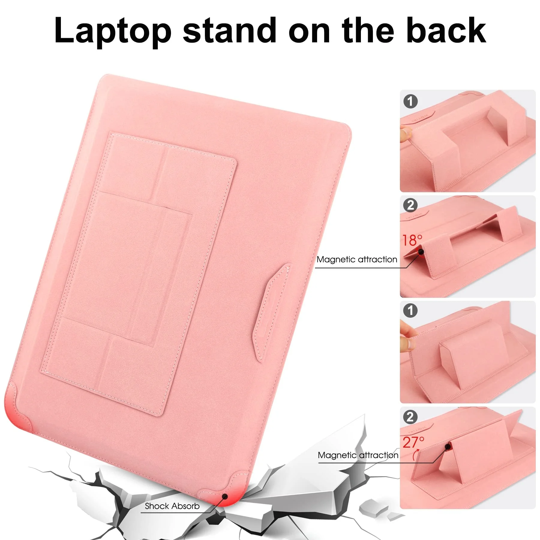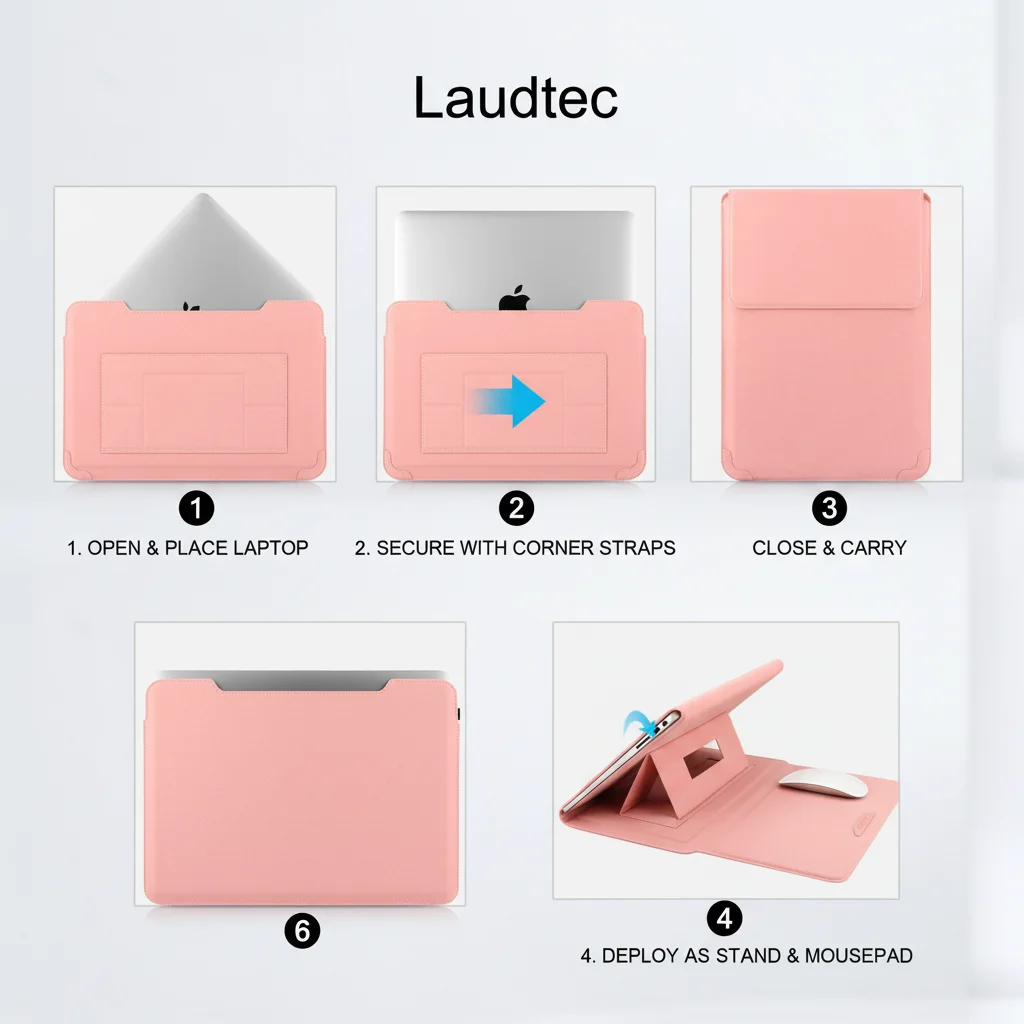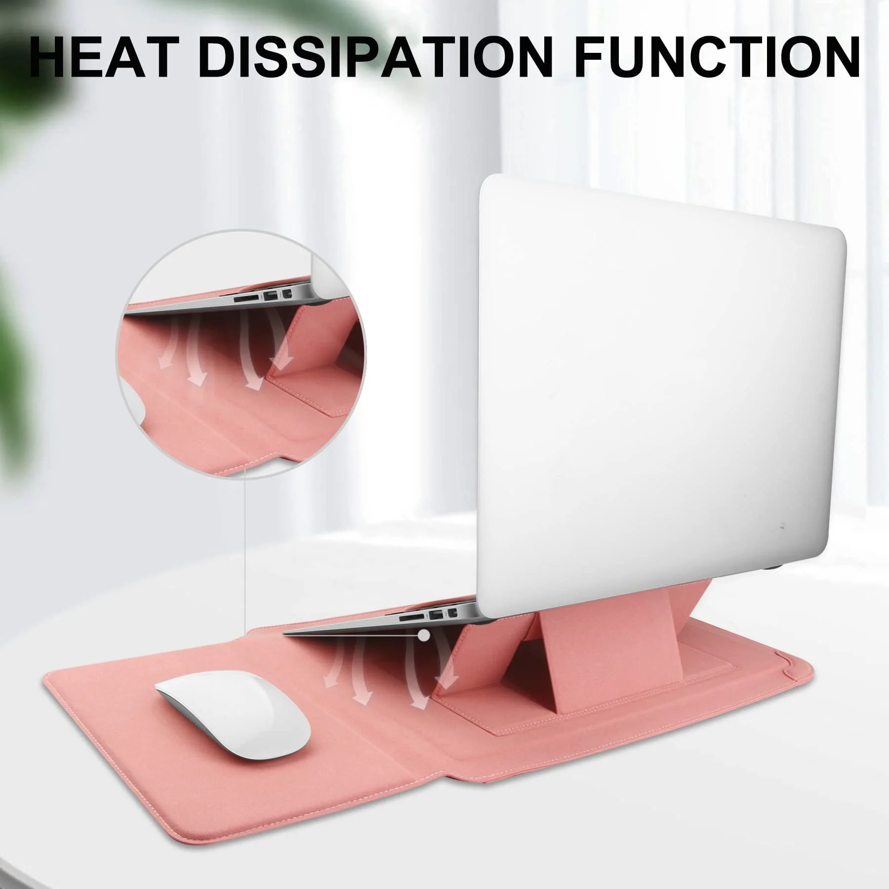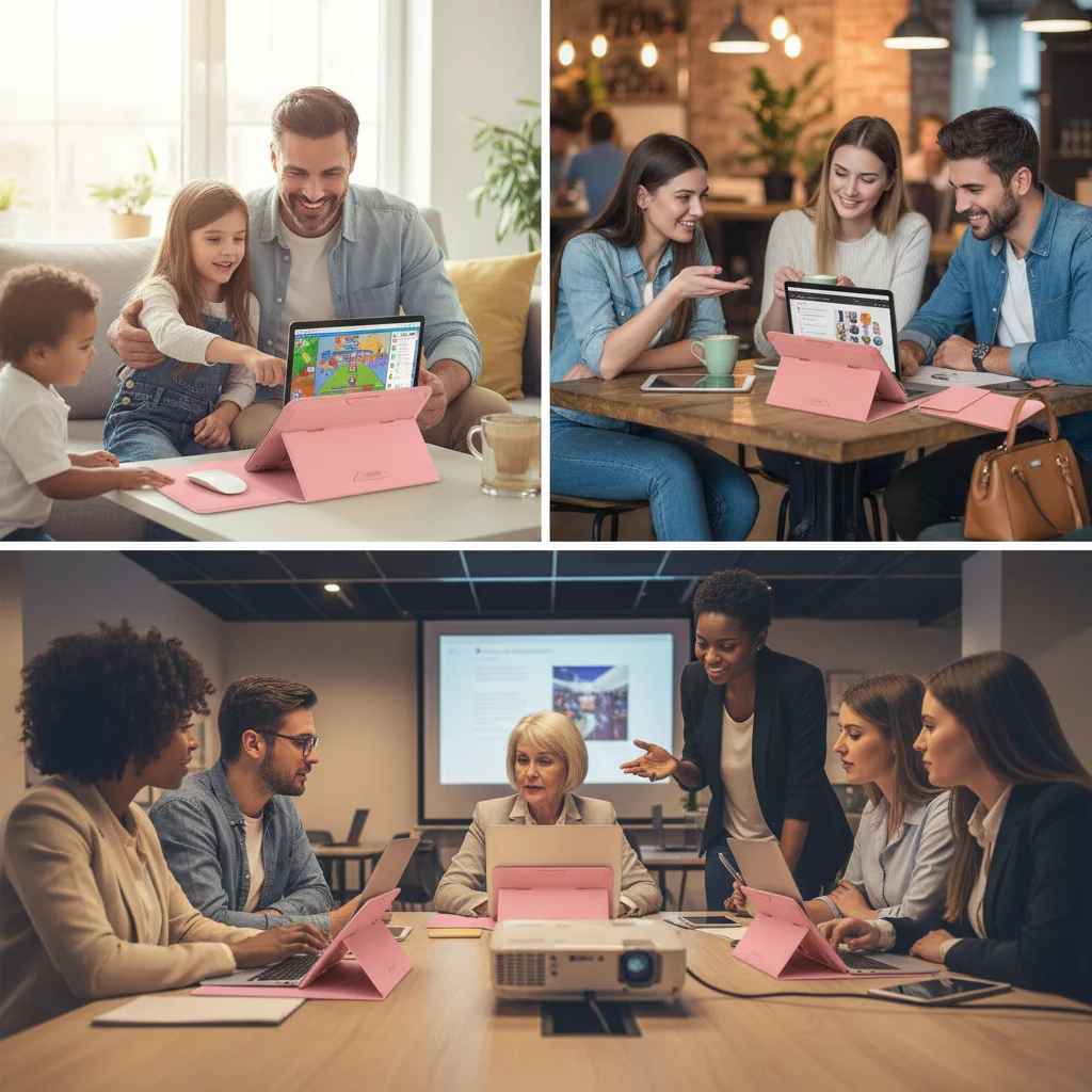 Funda para portátil al por mayor de fábrica, alta calidad, OEM/ODM, funda de cuero PU con ángulo ajustable y soporte, 14'', color rosa