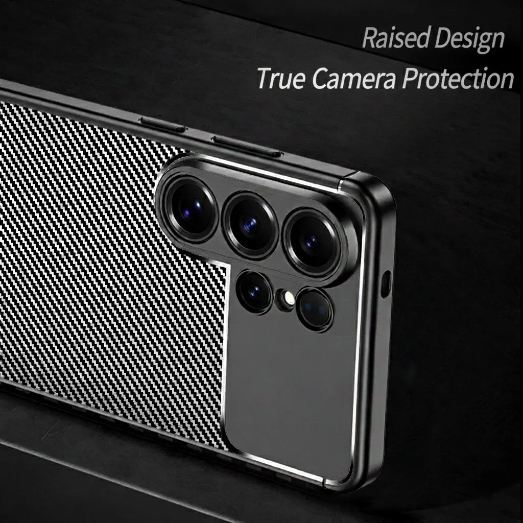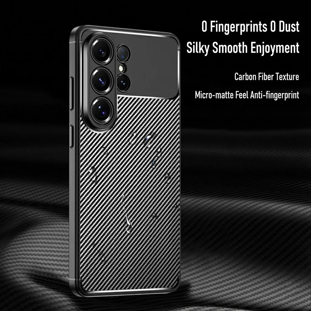 Funda de teléfono TPU Premium Laudtec con textura de fibra de carbono antihuellas y tacto suave, resistente a impactos para SAMSUNG S26 Ultra