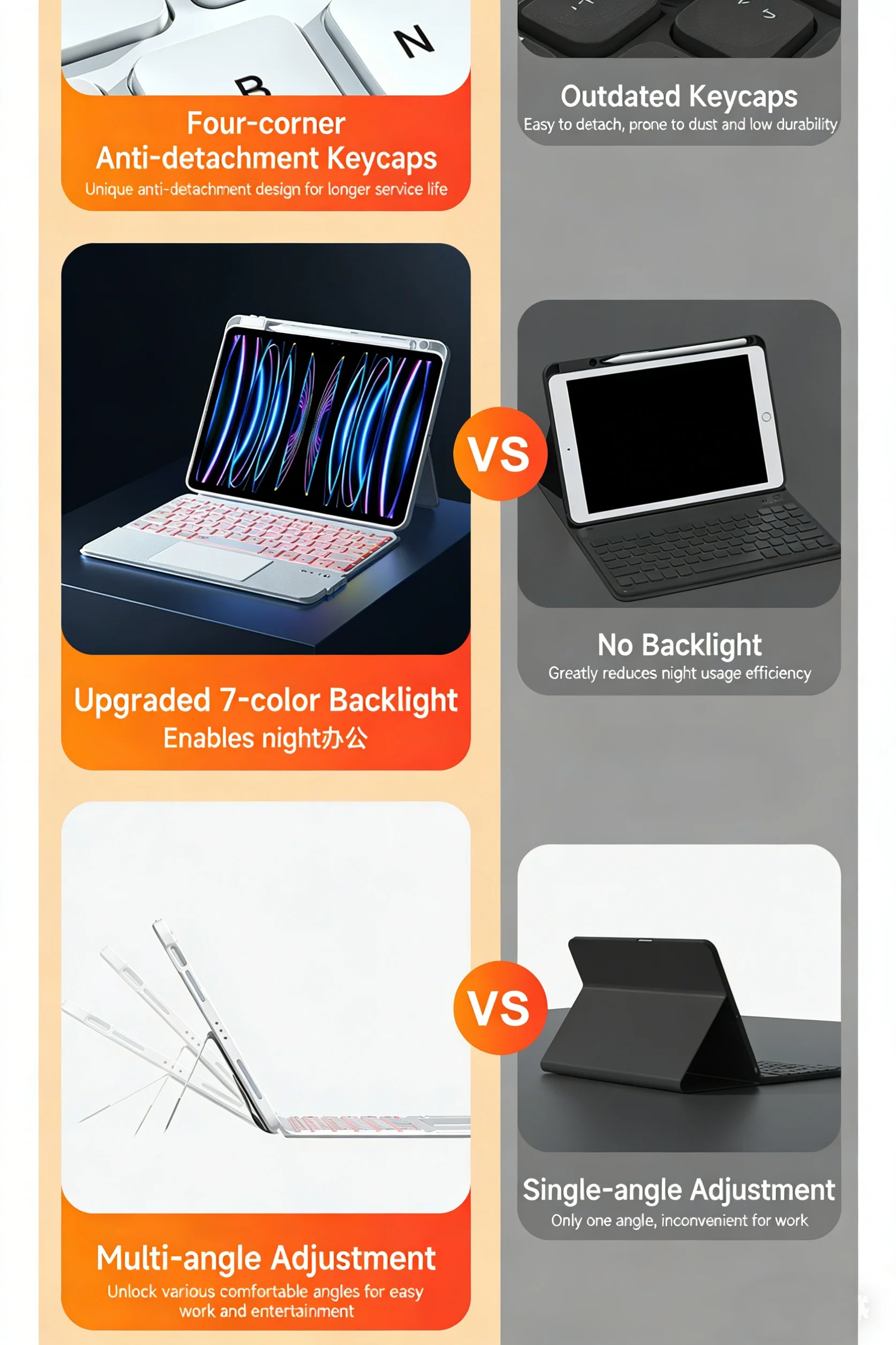 Funda mejorada con teclado magnético Laudtec con protección de airbag y teclas resistentes a caídas, adecuada para iPad 10/11 A16