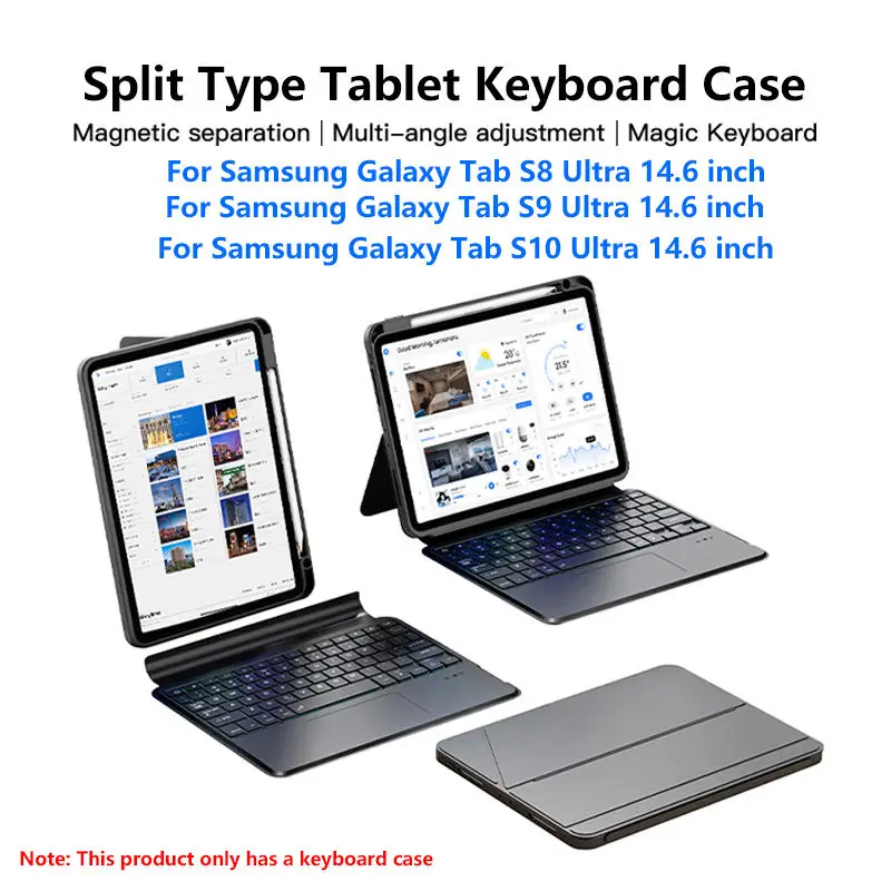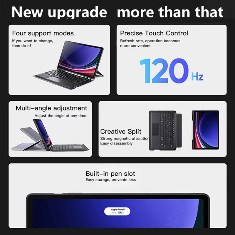 Funda premium OEM de cuero para tableta con teclado inalámbrico Bluetooth y ranura para lápiz, compatible con Samsung Galaxy Tab S9 de 14.6 pulgadas