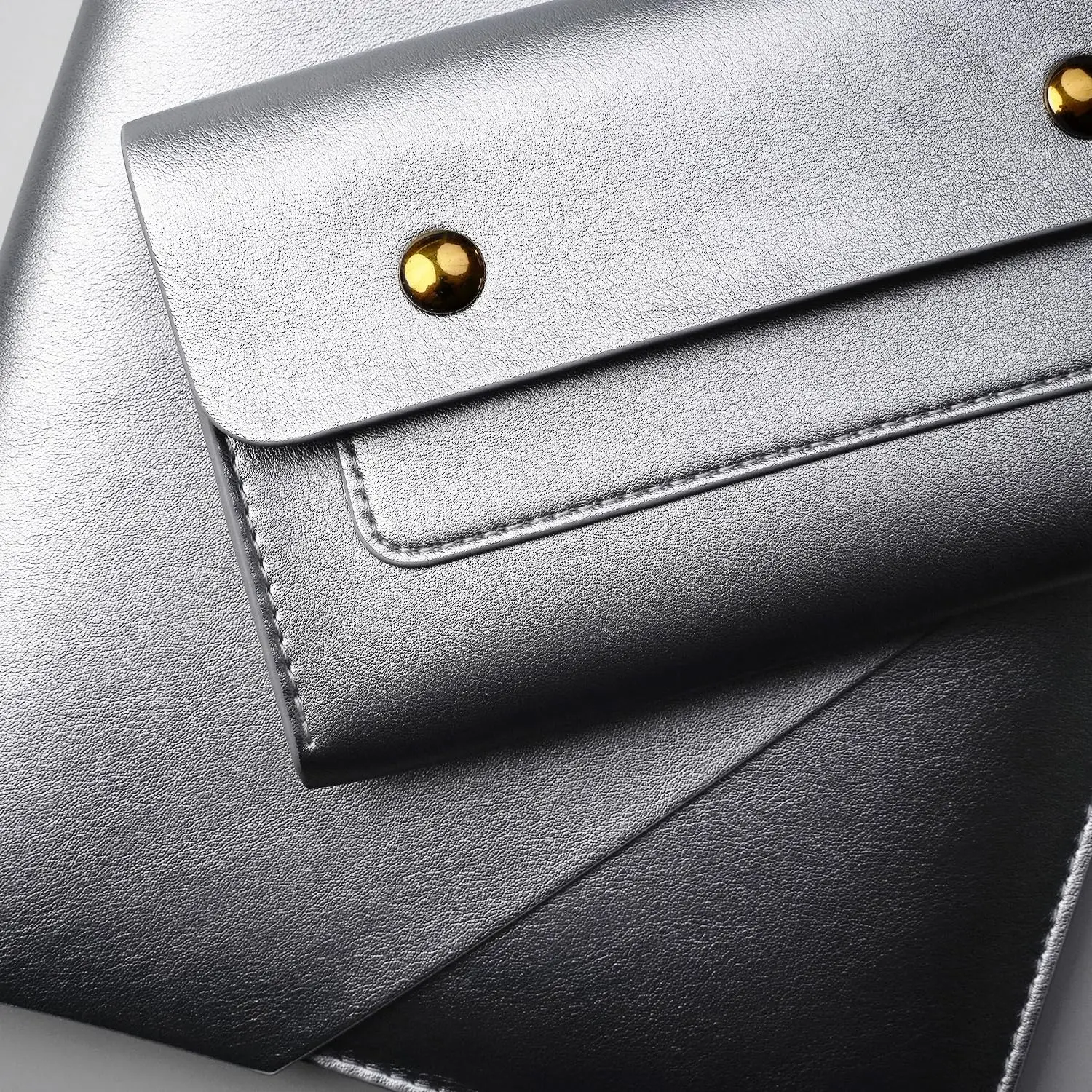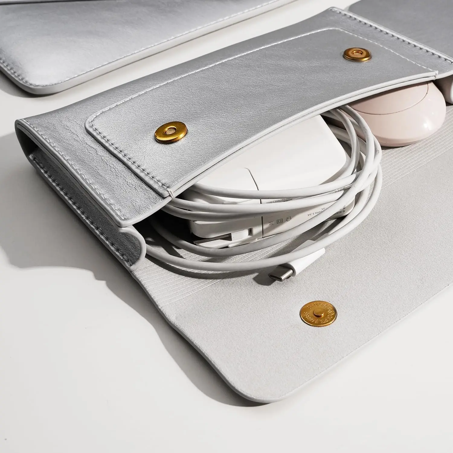 Funda de Cuero PU para Portátiles de 15 Pulgadas para MacBook Pro 14 15 16 Pulgadas con Pequeño Compartimento para Ratón y Organizador de Cables, Pack de 4 en 1 Color Plata