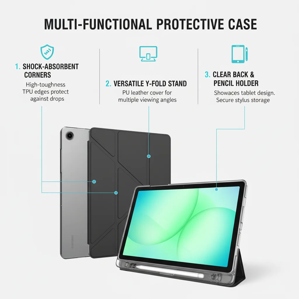 Funda inteligente TPU+PC para Samsung Galaxy Tab A11+/A9+, funda protectora delgada magnética y anti-huellas con función de encendido/apagado automático