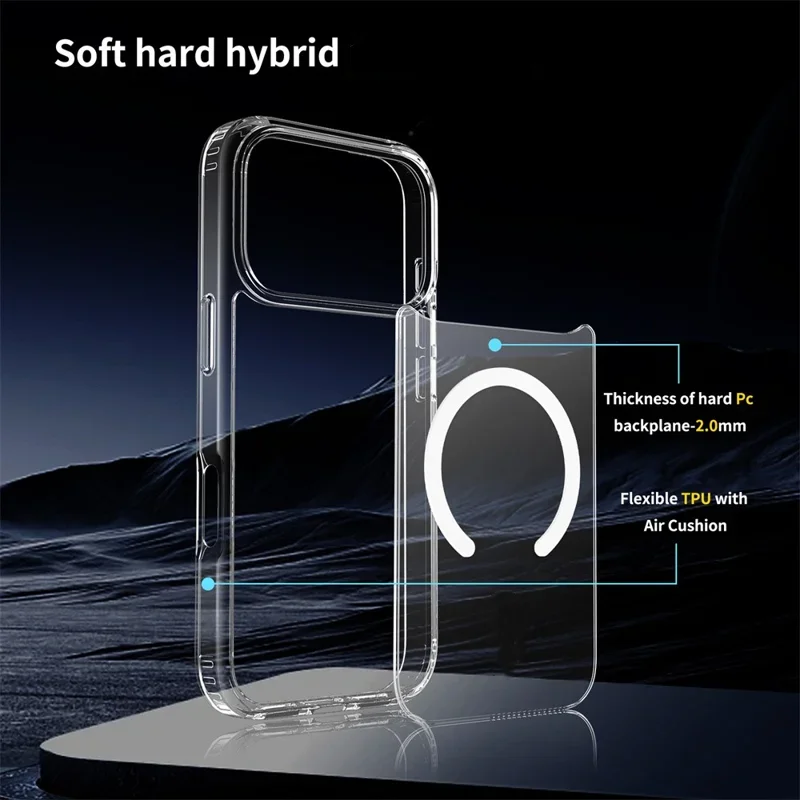 Étui transparent en TPU+PC avec charge magnétique sans fil, antichoc, résistant aux rayures, design personnalisable pour iPhone 17 Pro Max