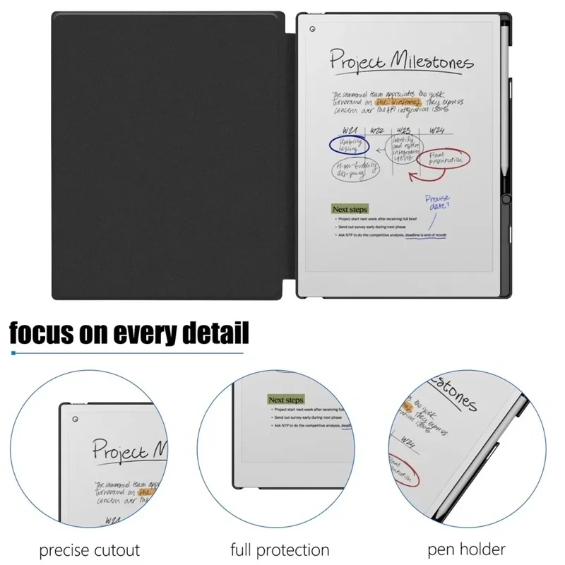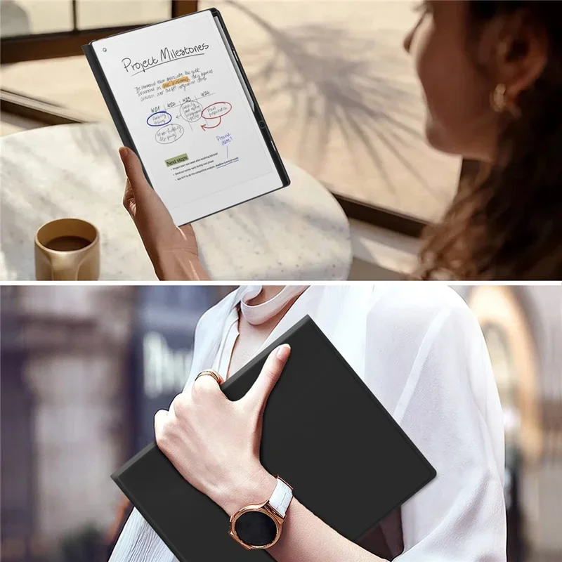 Coque arrière rigide mince et légère en PC+cuir PU avec support intégré, housse de protection noire avec fonction de réveil/sommeil automatique pour Remarkable Paper Pro, de la marque Laudtec