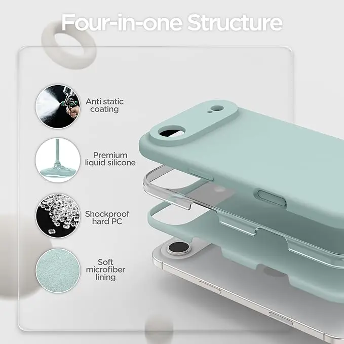 Coque de téléphone Laudtec en silicone véritable avec protection anti-rayures, étanche, résistante aux chocs, poignée souple, design ultra-fin pour iPhone 17 Air, vert