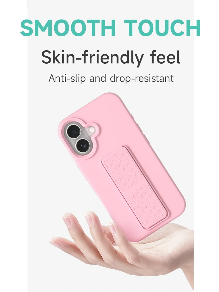 Laudtec Vente en gros housse de téléphone en silicone avec support, toucher agréable pour la peau, en silicone liquide, avec support pour iPhone 16 17