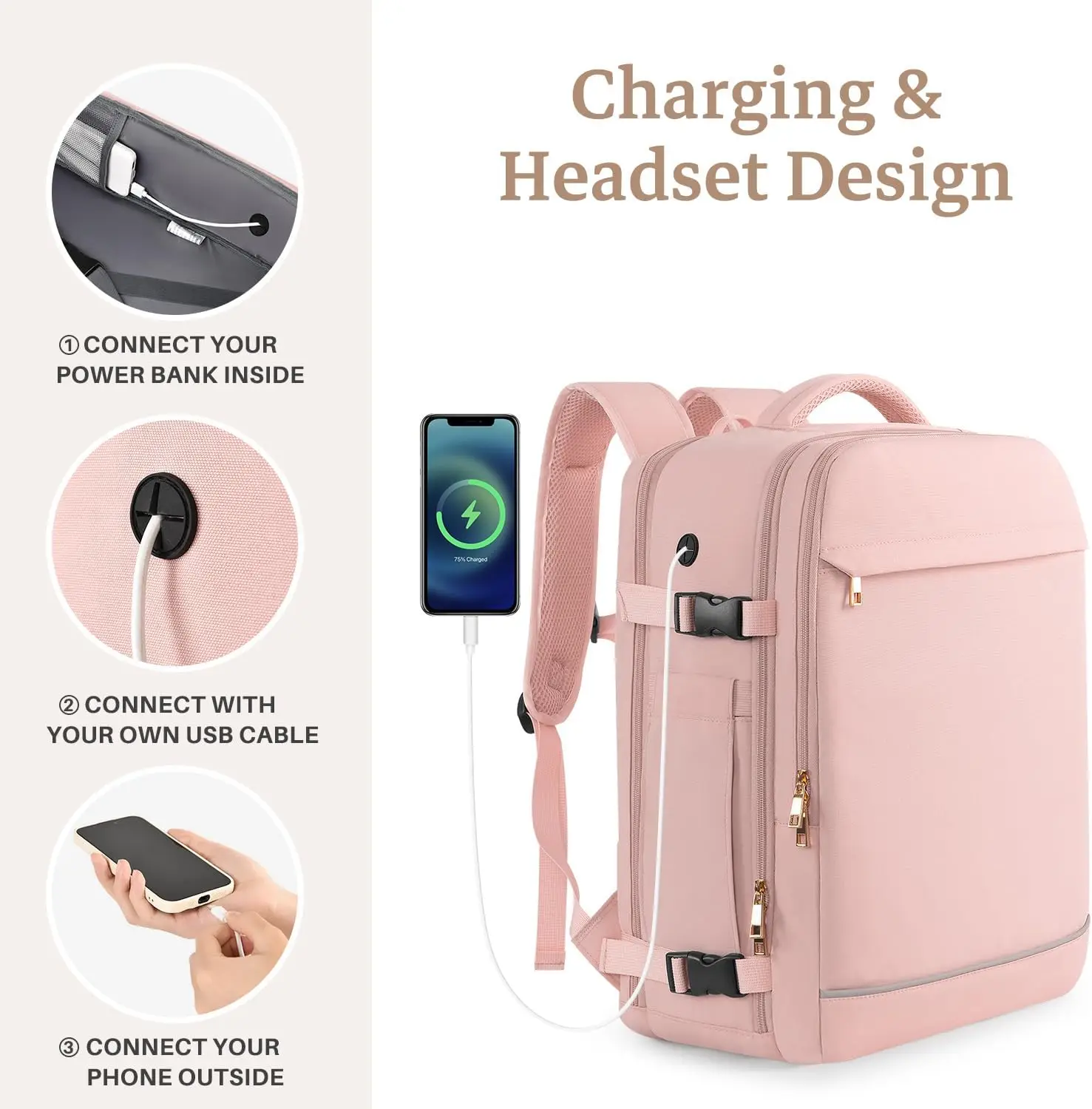 Sac à dos de voyage, approuvé pour le transport en vol, pour femmes et hommes, sac à dos pour ordinateurs portables, sac de voyage 40L avec 2 cubes de rangement
