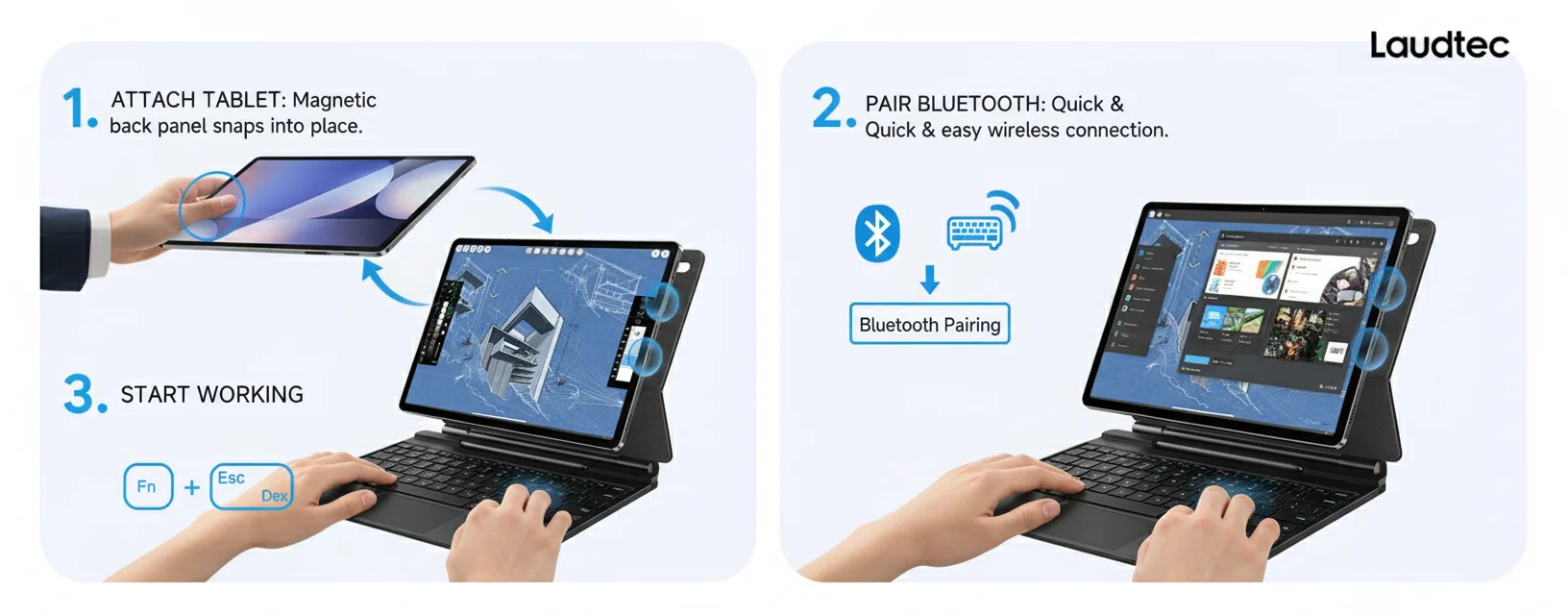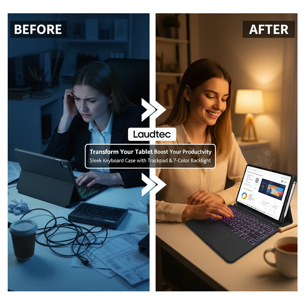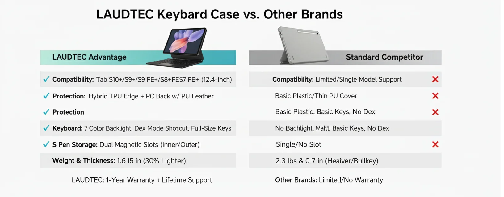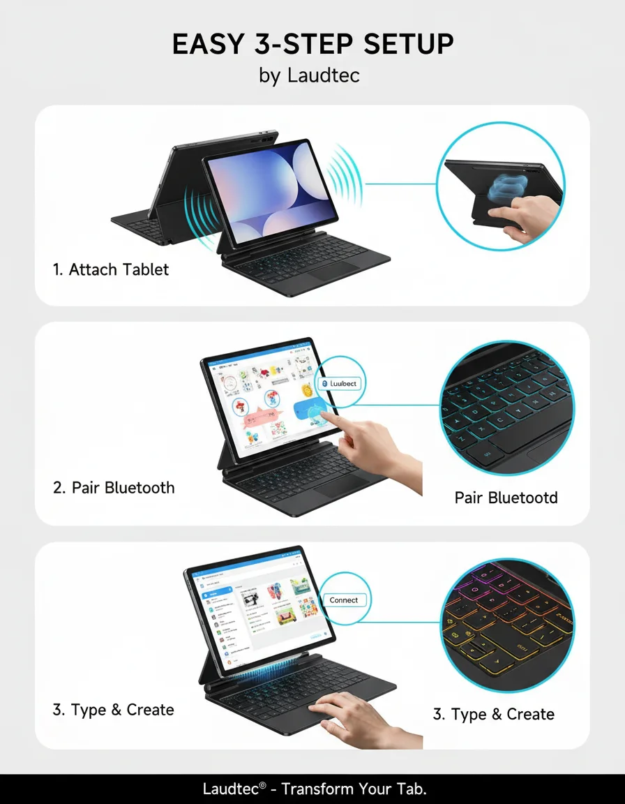 12.4インチキーボードケース(Samsung Galaxy Tab S10/S9/S9 FE/S8/S7対応)、トラックパッド搭載、バックライト付き、Sペンホルダー付、マグネット式スタンド、軽量設計、Laudtec製