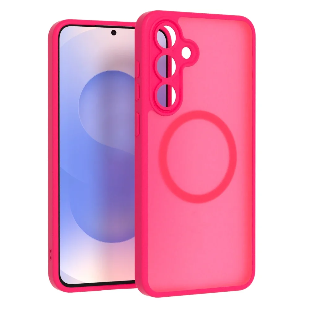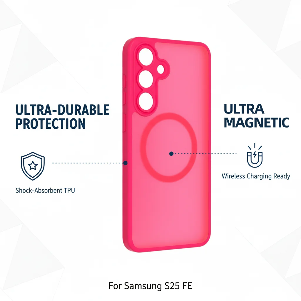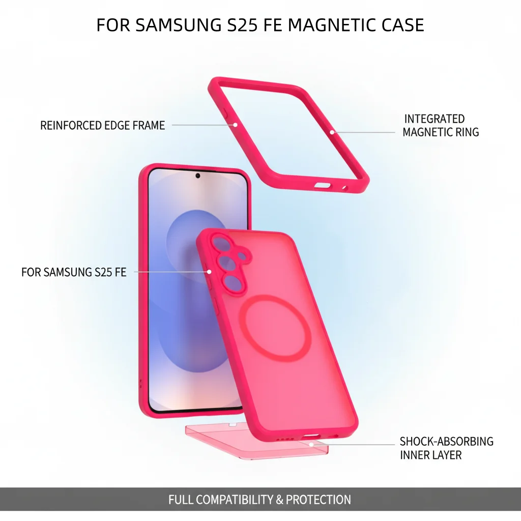 Laudtec TPU+PC スマホケース 超強力マグネット搭載 ソフトタッチ質感 Samsung S25 FE用 ローズレッド