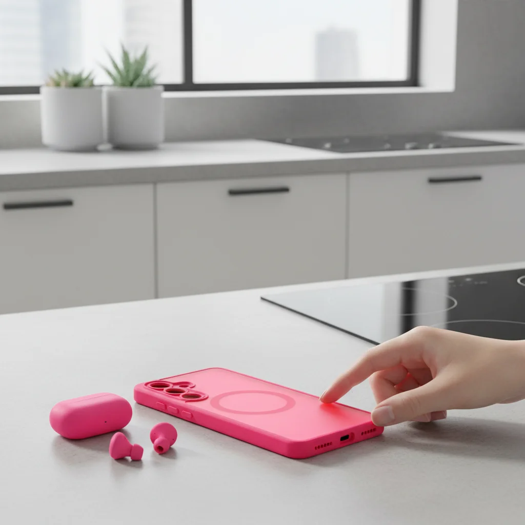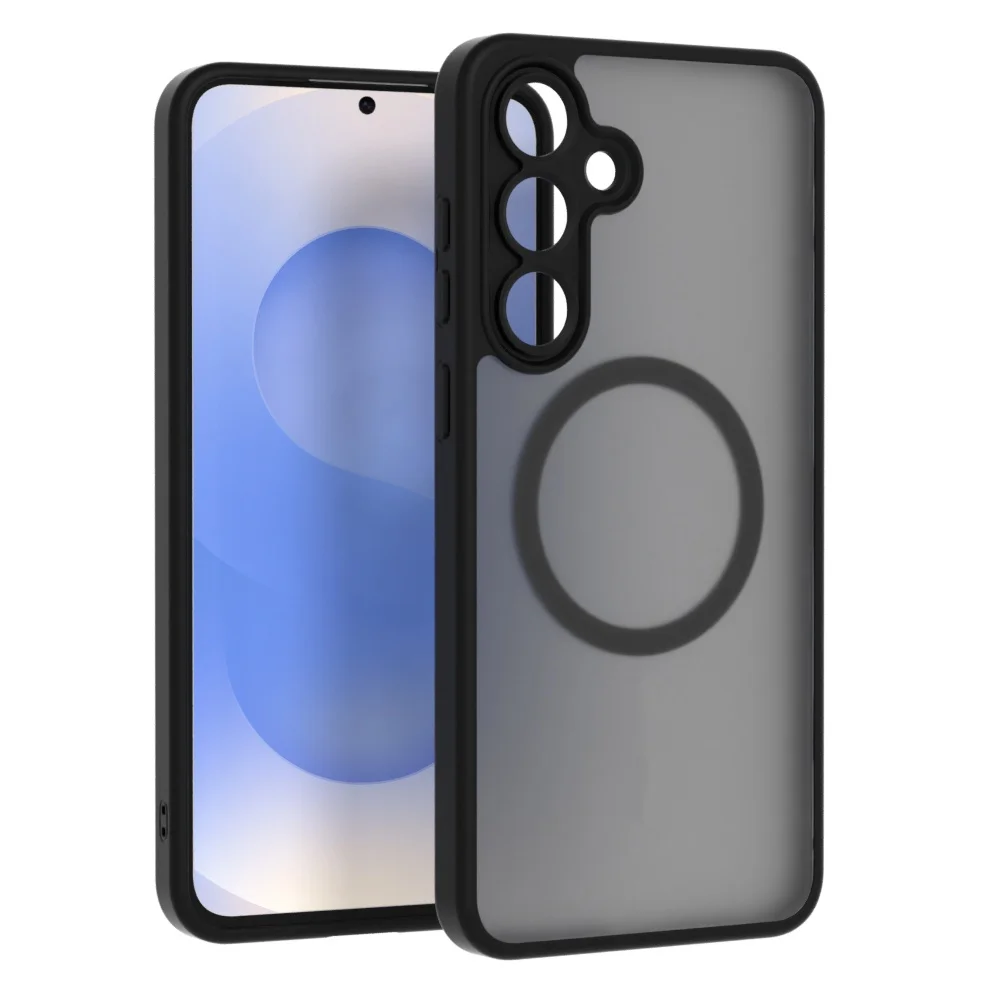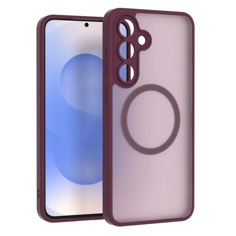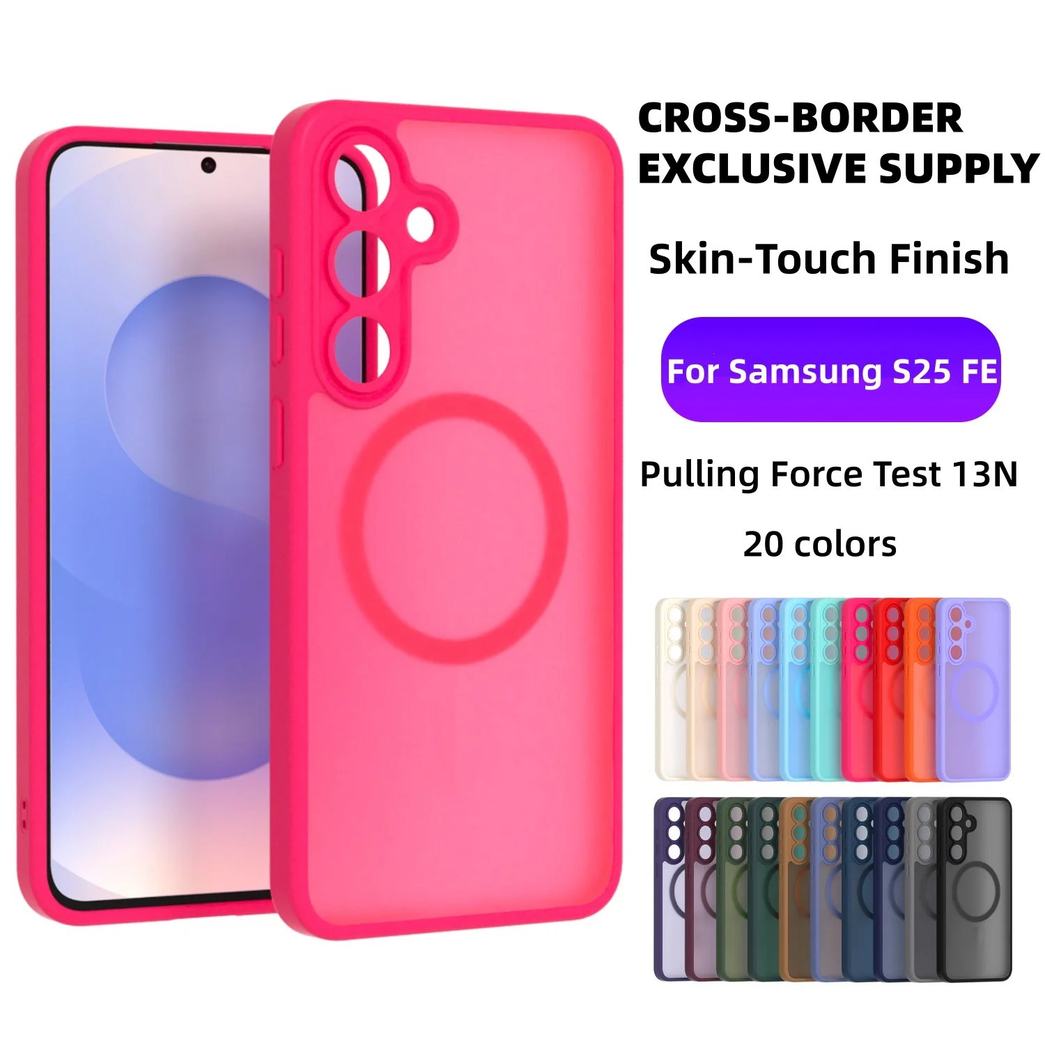 Laudtec TPU+PC スマホケース 超強力マグネット搭載 ソフトタッチ質感 Samsung S25 FE用 ローズレッド