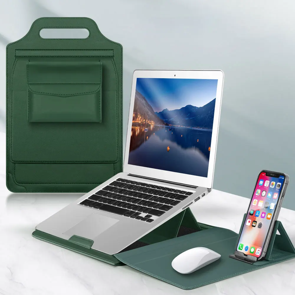 Laudtec PUレザーBag ノートPC マウスパッド 調整可能 タブレットホルダー 3in1 シンプルバッグ ハンドヘルドスタンド コンピュータ バックパック オフィス Dnb29