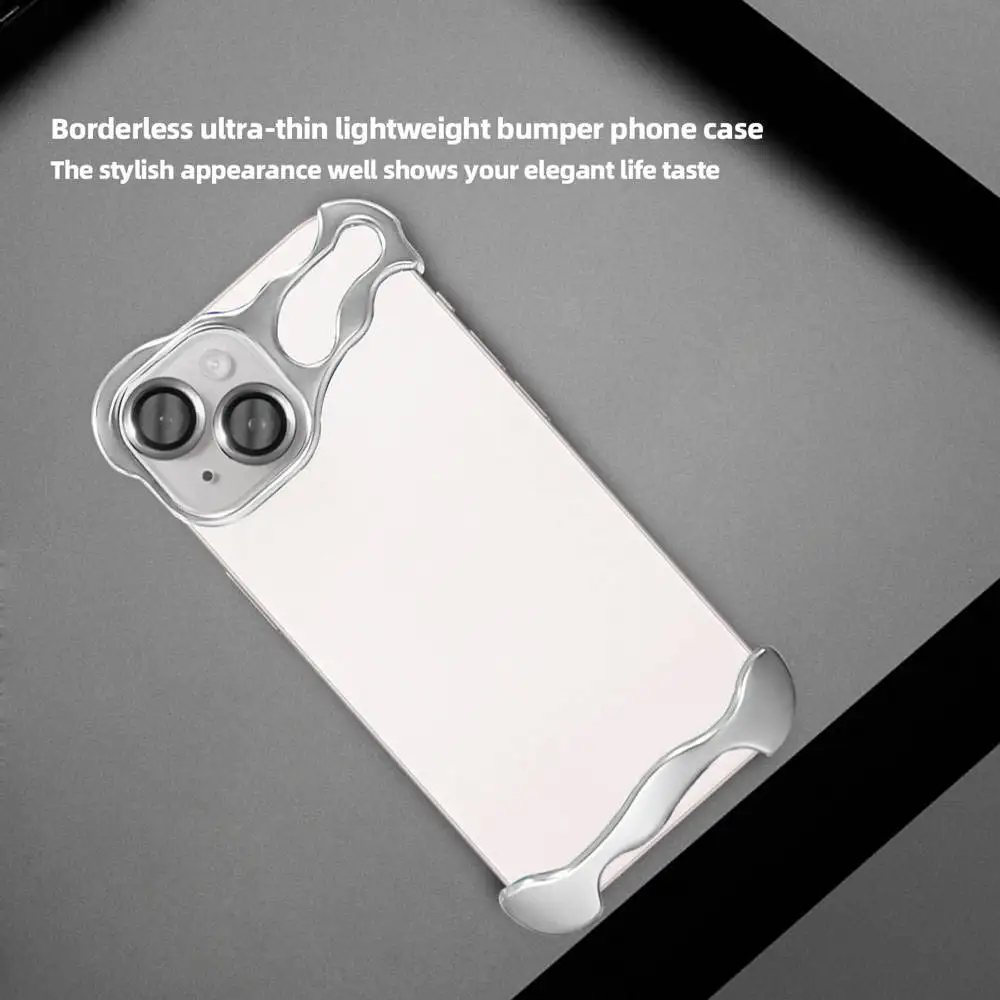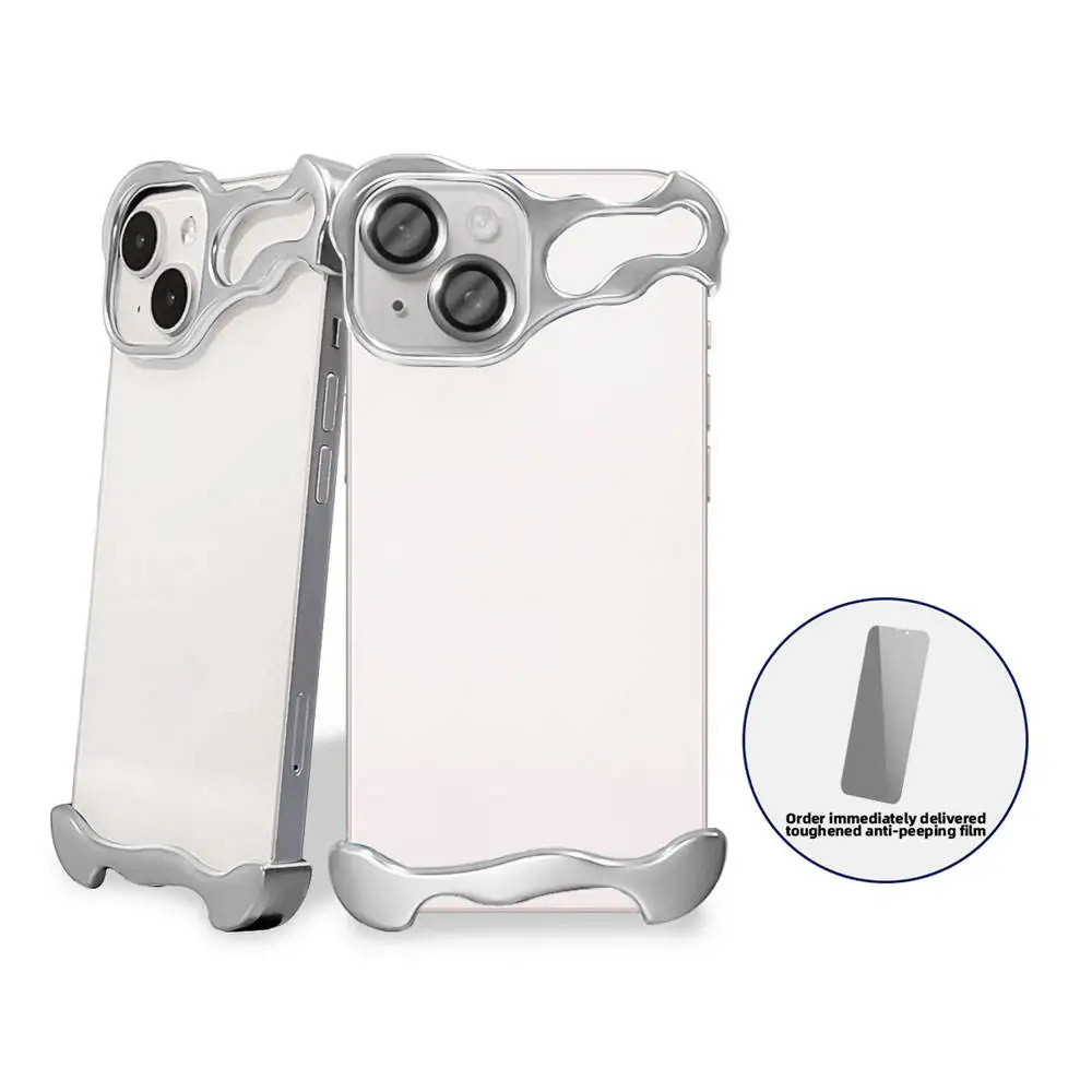 Laudtec 特殊形状のTrueエッジレスフォンケース iPhone 15 14 13 Plus Pro Max用 フレームレスメタルモバイルケース SJK629