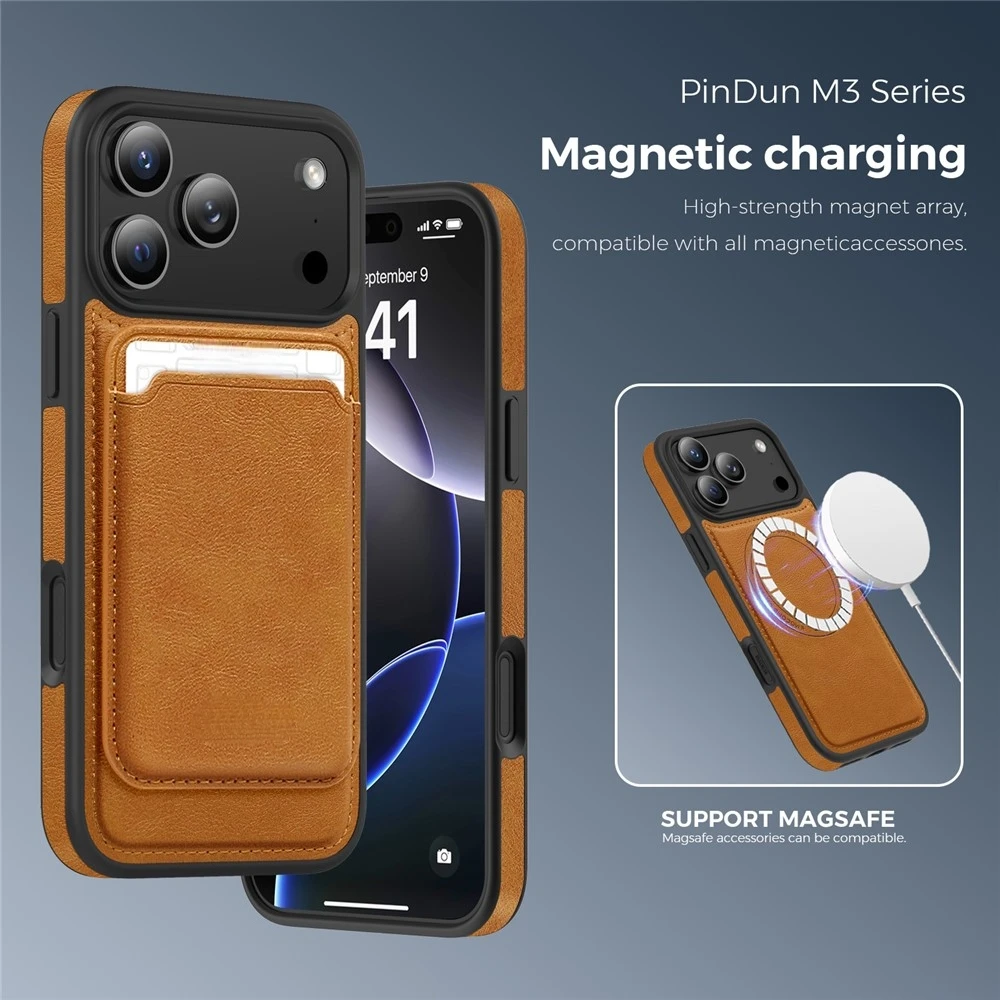 IPhone 17 Pro用マグネットケース カードホルダー取り外し可能 ハイブリッドTPUフレーム&高級PUレザー背面