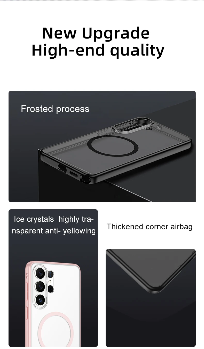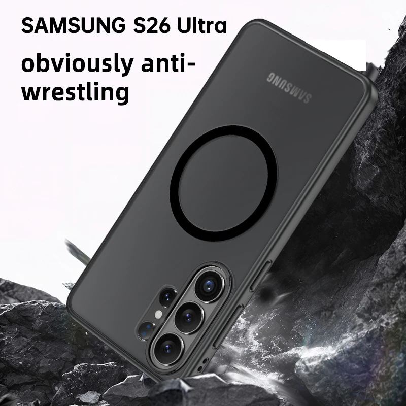 S26 Ultra スマートフォンケース用マグネット式ステッカー取り付け設計、衝撃吸収PC+TPU素材、純色、強力マグネット固定タイプ、対象機種: