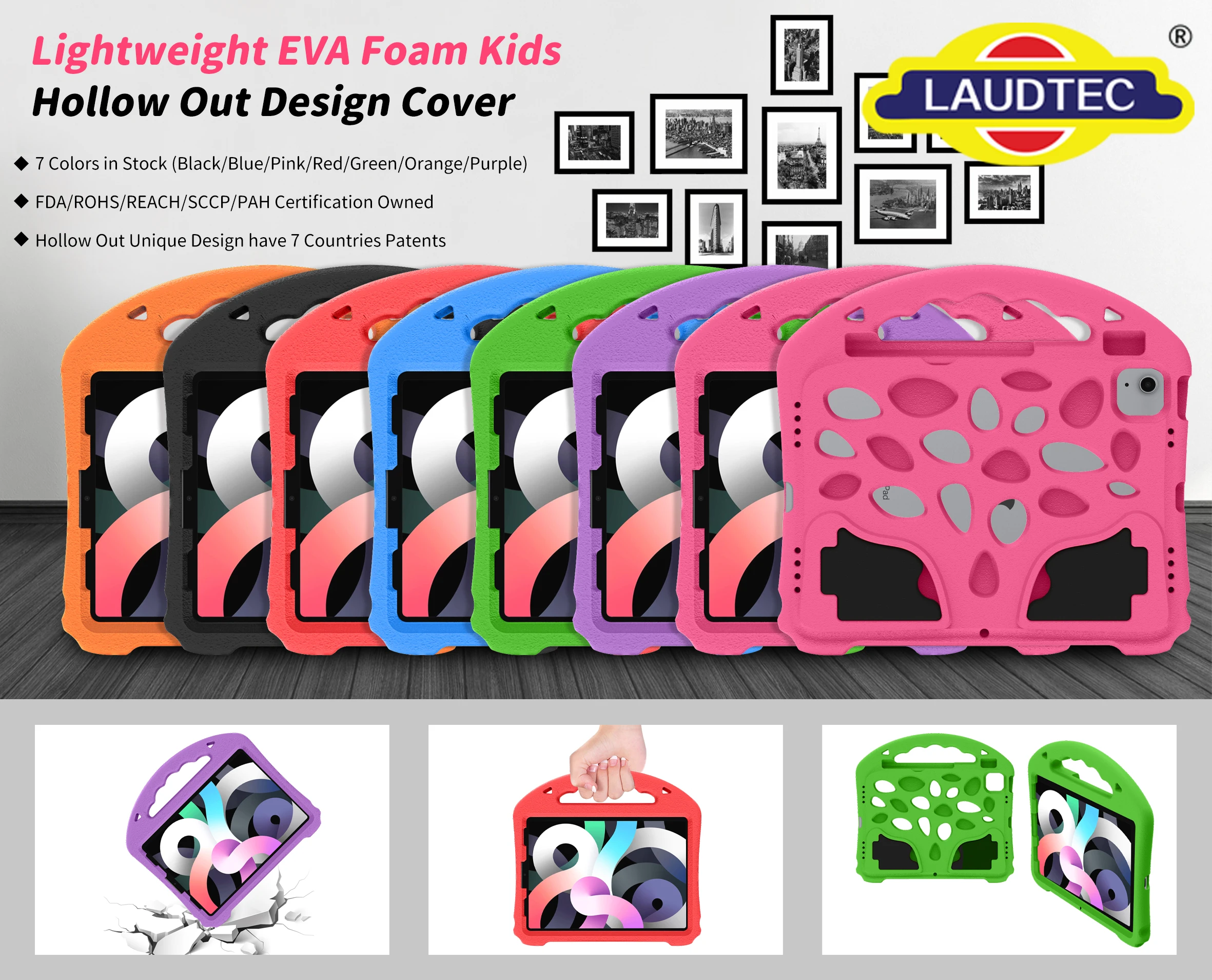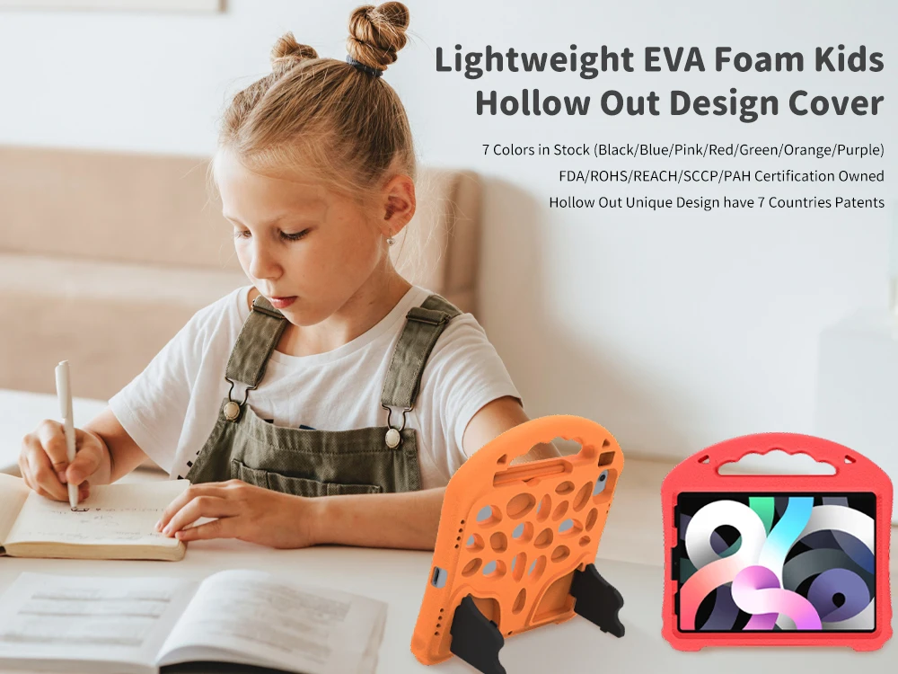 OEM/ODM対応キッズタブレットケース(EVAフォーム製ショックプロテクションカバー)、ハンドル&スタンド付き(iPad 9.7インチ/mini 1/2/3/4/5対応)、デザインカスタマイズ可能