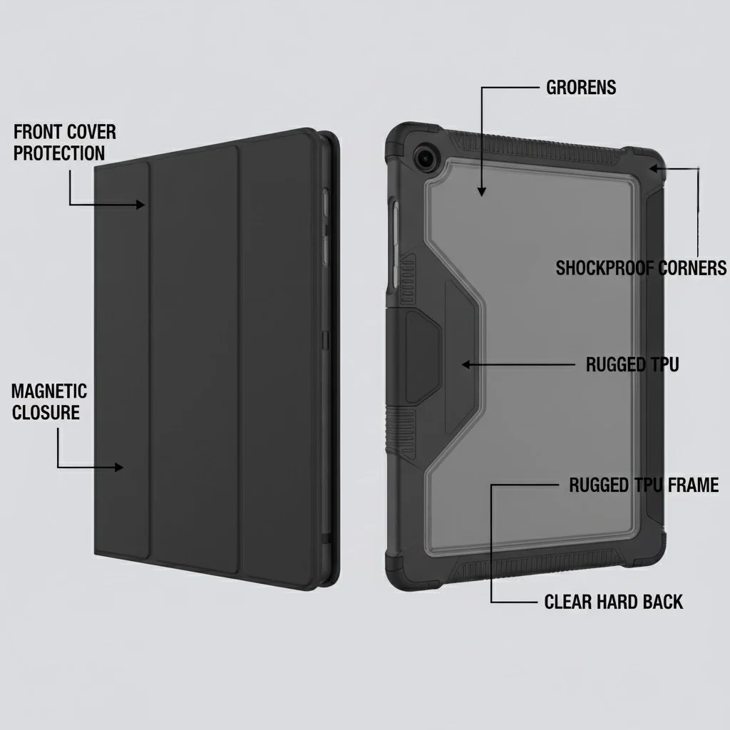 TPU+PC製スマートケース(Samsung Galaxy Tab A11+/A9+対応)、保護機能付きスリムカバー、ショックプロテクション・タフネスハードタブレットケース、オートウェイク/スリープ機能対応