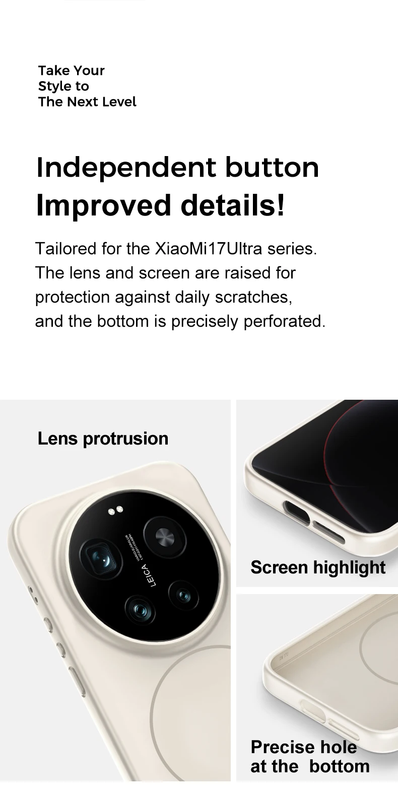 TPU+PC製スマホケース:衝撃吸収・傷防止・マット加工のスマホバンパー付き、ワイヤレス充電対応(Xiaomi 17 Ultra用)
