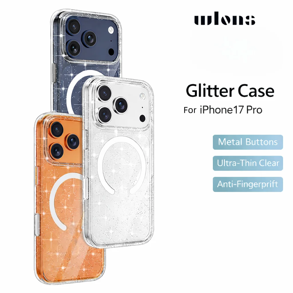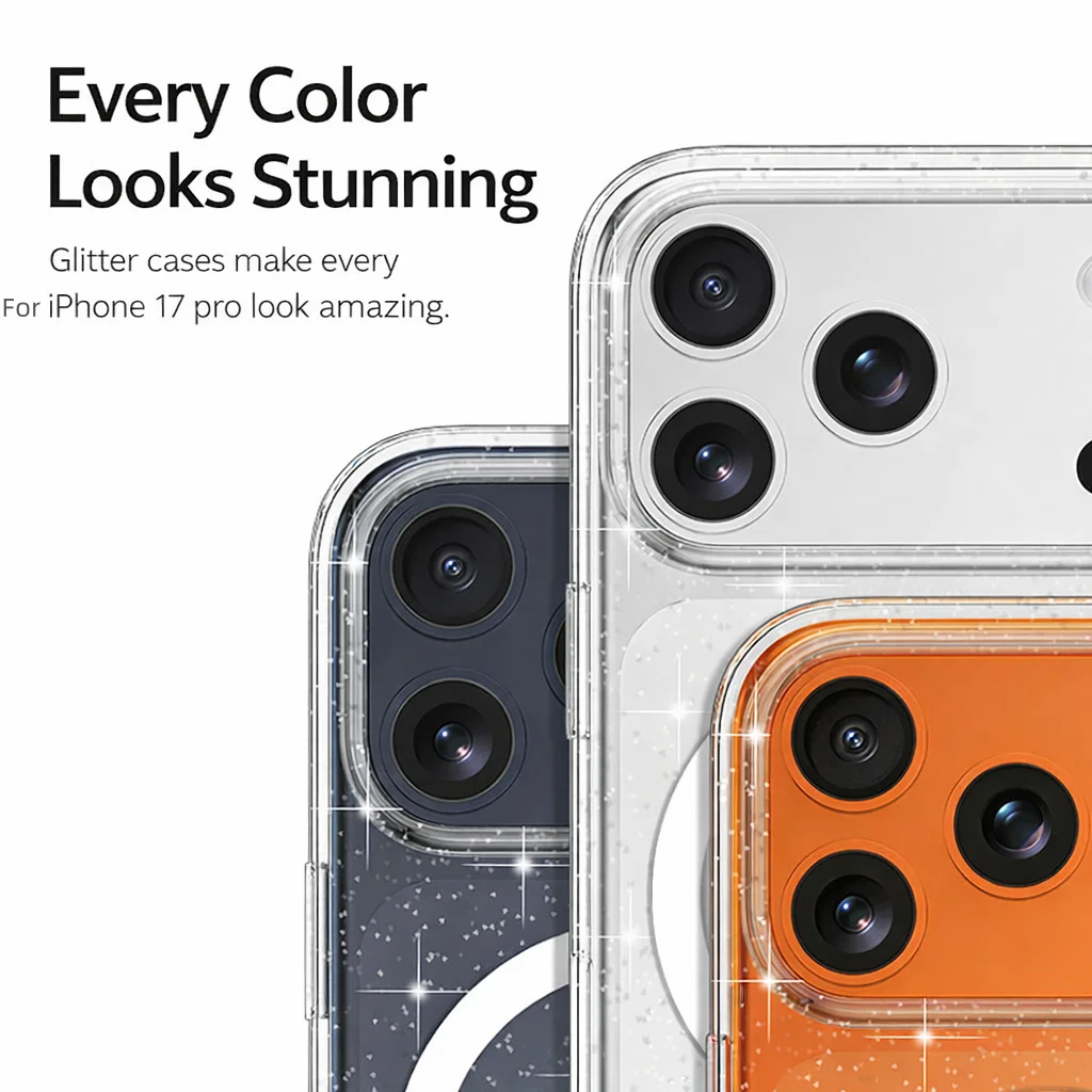 Clear Magnetic Glitter Transparent Cover for Iphone17 Pro Max TPU Shockproof Case Back Sjk1177 Wholesale OEM/ODM/Private Label