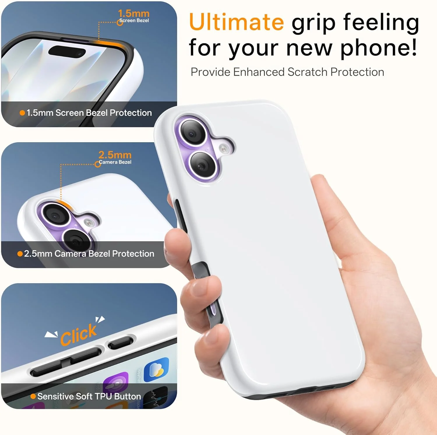 MATERIAL: PC Hardshell exterior coating film have glossy and matte for your choices,TPU interior 90 degrees TPU plus high quality (can stand in high temperature 140 degrees not shape out and can stand minus 40 degrees celcius) CONSTRUCTION: Dual layer Protection,Durable hardshell material ideal for sublimation, offers excellent color retention, and protects against drops, scratches, and daily wear and tear COMPATIBILITY: Sublimation Blank cases Custom-designed for iPhone models, featuring precise cutouts for camera, buttons, and ports