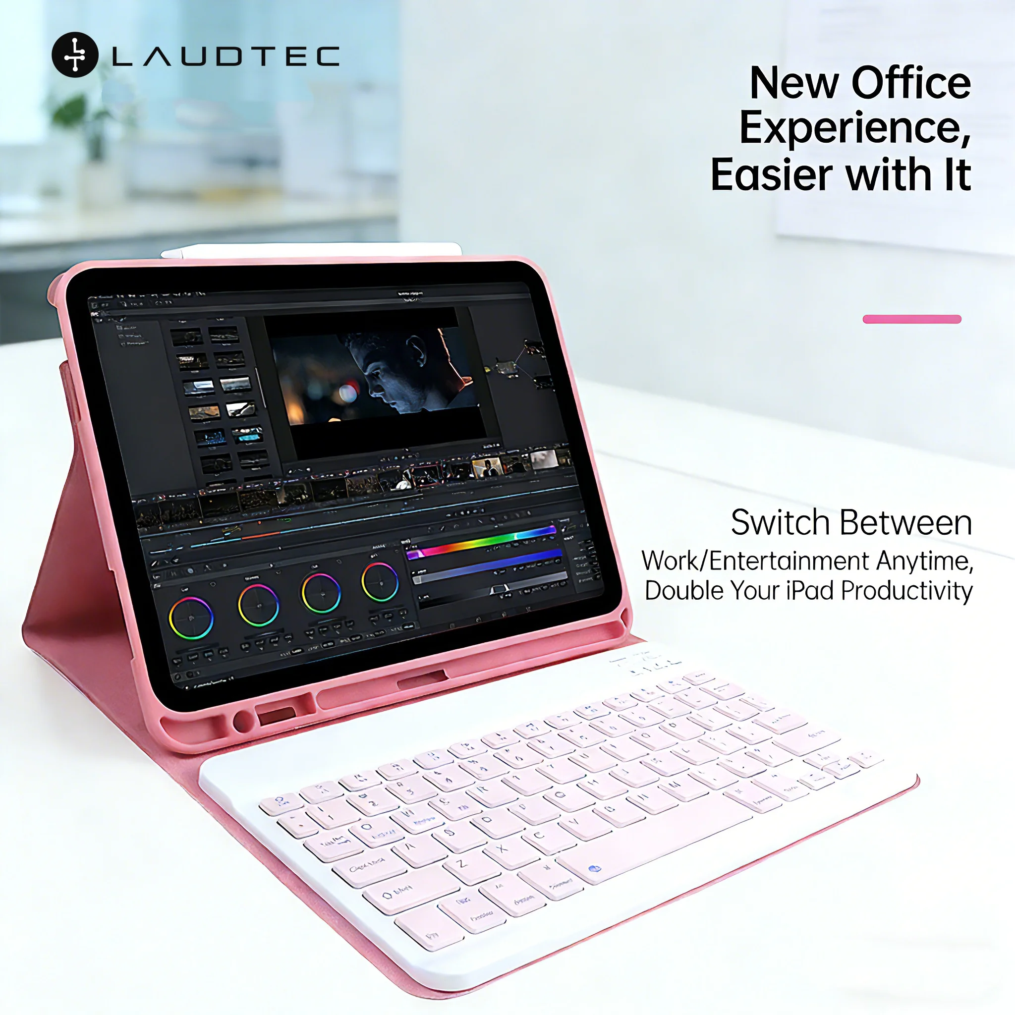 For iPad 11Inch Pink Glitter Bluetooth Magic Keyboard Case Detachable Leather Folio-Style Layout Wholesale OEM/ODM/Private Label