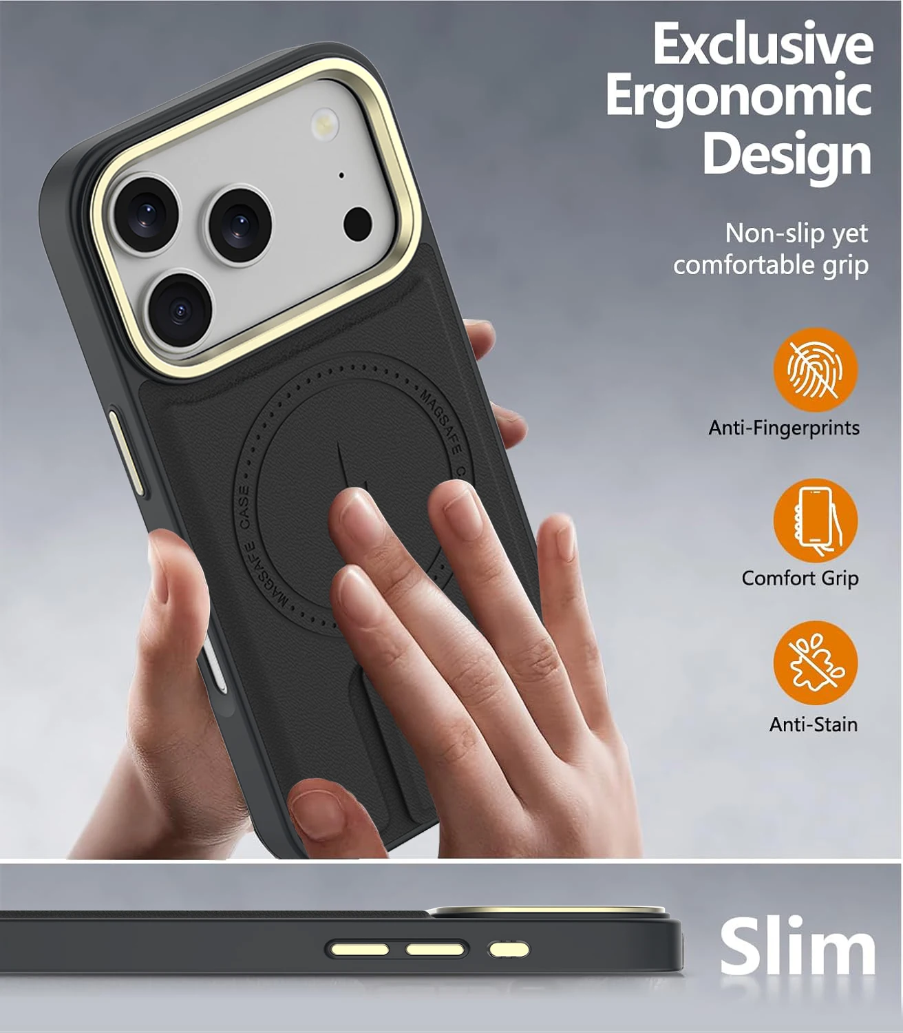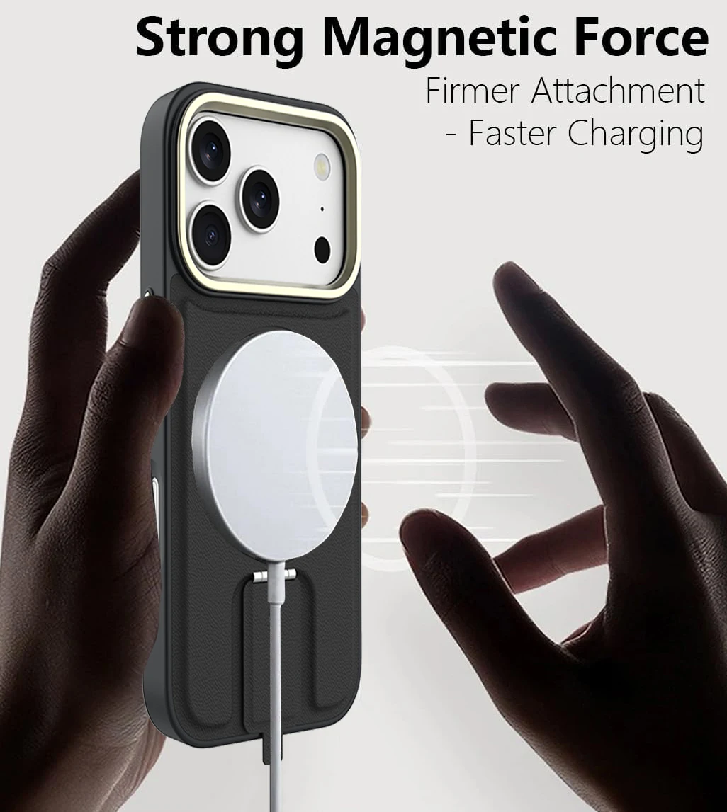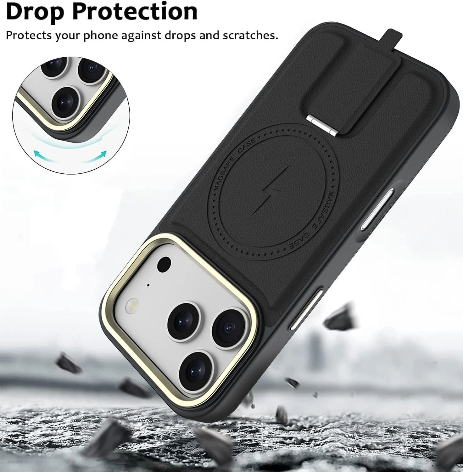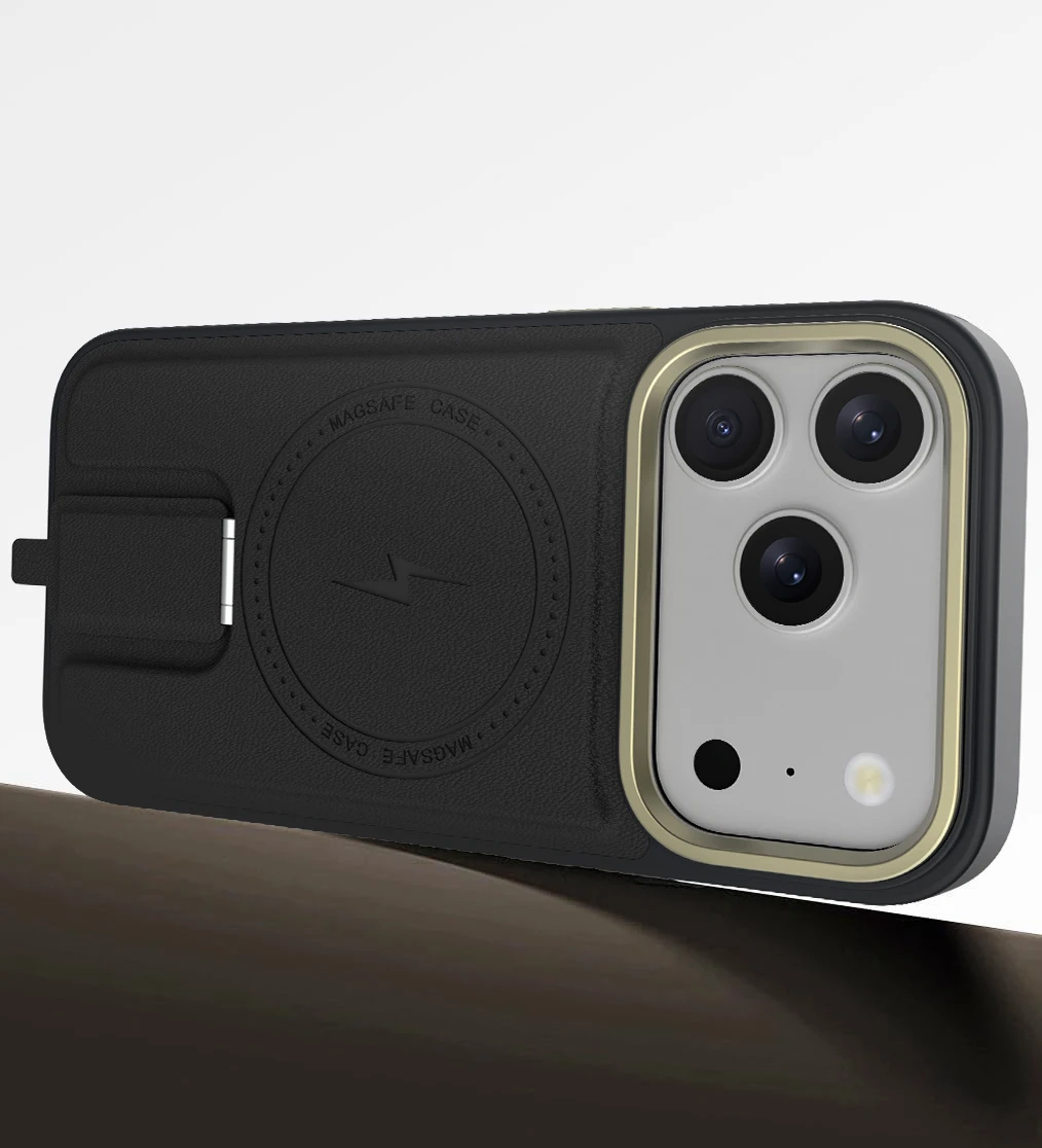 product for luxury design magnetic shockproof waterproof pu leather case stand wireless charging certified for iphone 17 pro max-17