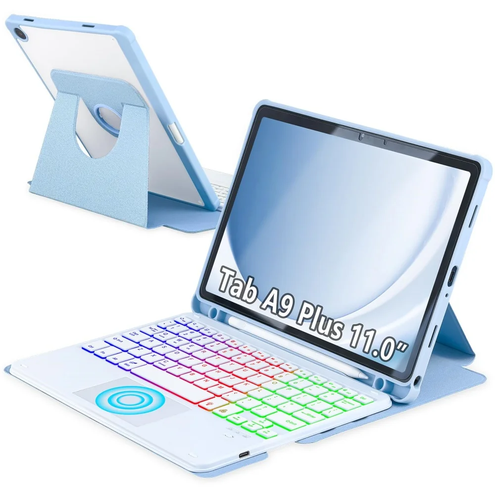product for samsung galaxy tab a9 plus 11inch 360 degree rotating colorful backlit magnetic removable keyboard case laudtec-8