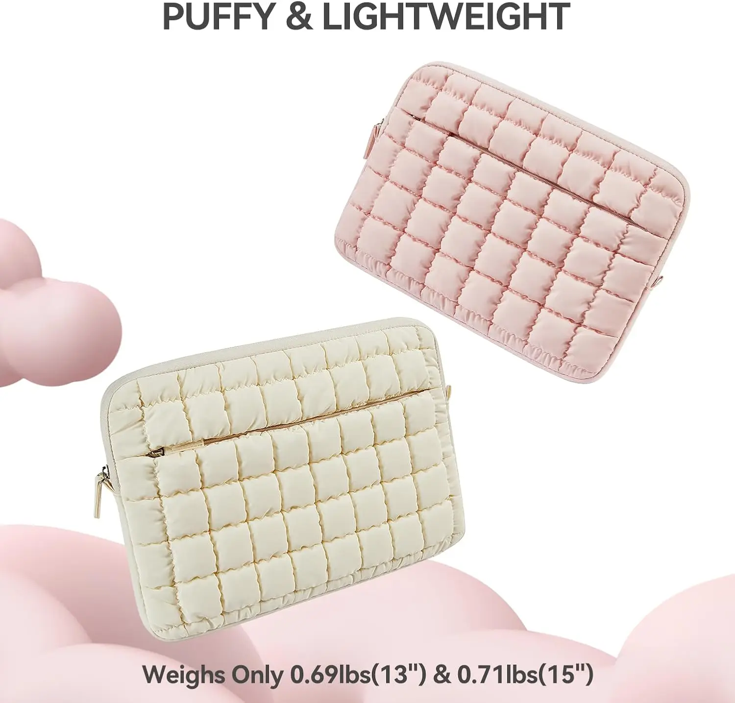Laptop Case Puffy Laptop Sleeve for MacBook Air 13 Inch M3 2024 Quilted Design Protective Bag for 13 14 Inch Laptops