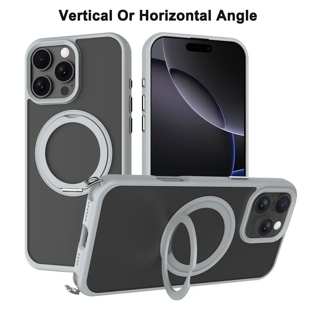 Laudtec Clear Back Phone Case 360 Rotating Holder Lanyard Hole Thin Shell Simple Cover for Iphone 17 Air 15 Plus Pro Max Sjk874