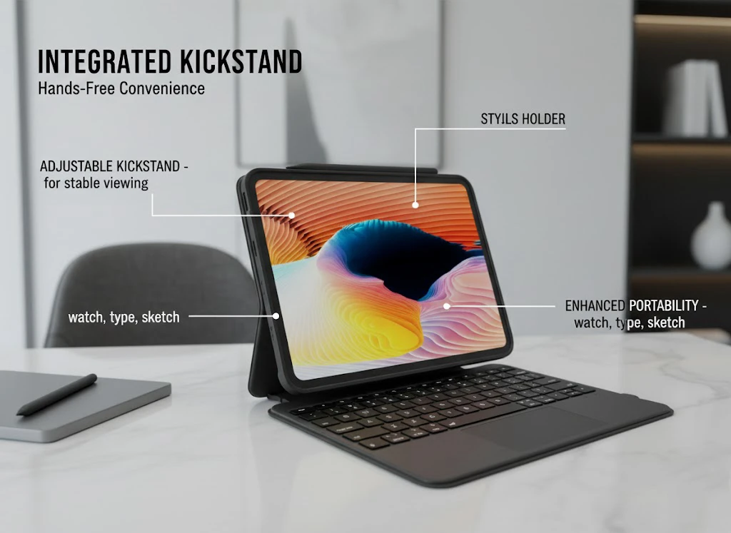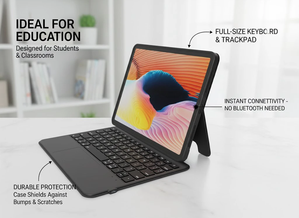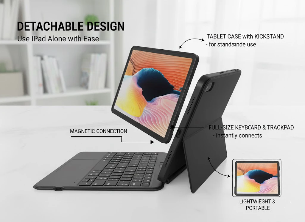 Laudtec for iPad Keyboard case with Removable 3-pin Connector and Buttons for 11 Pro 2024 (M4)/2025 (M5)