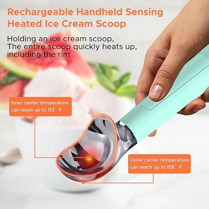 Laudtec New Ice Cream Scooper with LED Display Seniors & Kids Rechargeable Electric Warming Scooper Heated Ice Cream Scoop Sz04