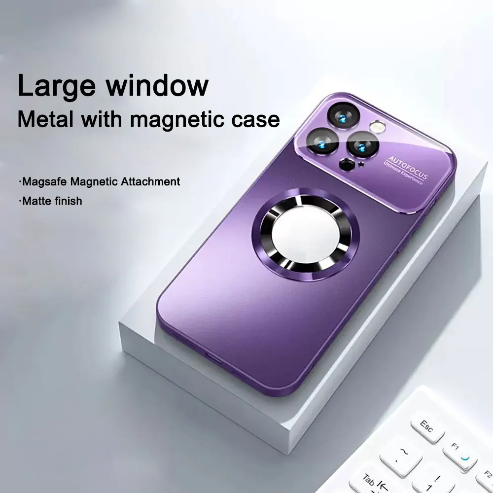 Luxury Large Window Magnetic Charging Camera Lens Protection Phone Case for iPhone 16 15 Plus Pro Max CD Mobile Phone Cases