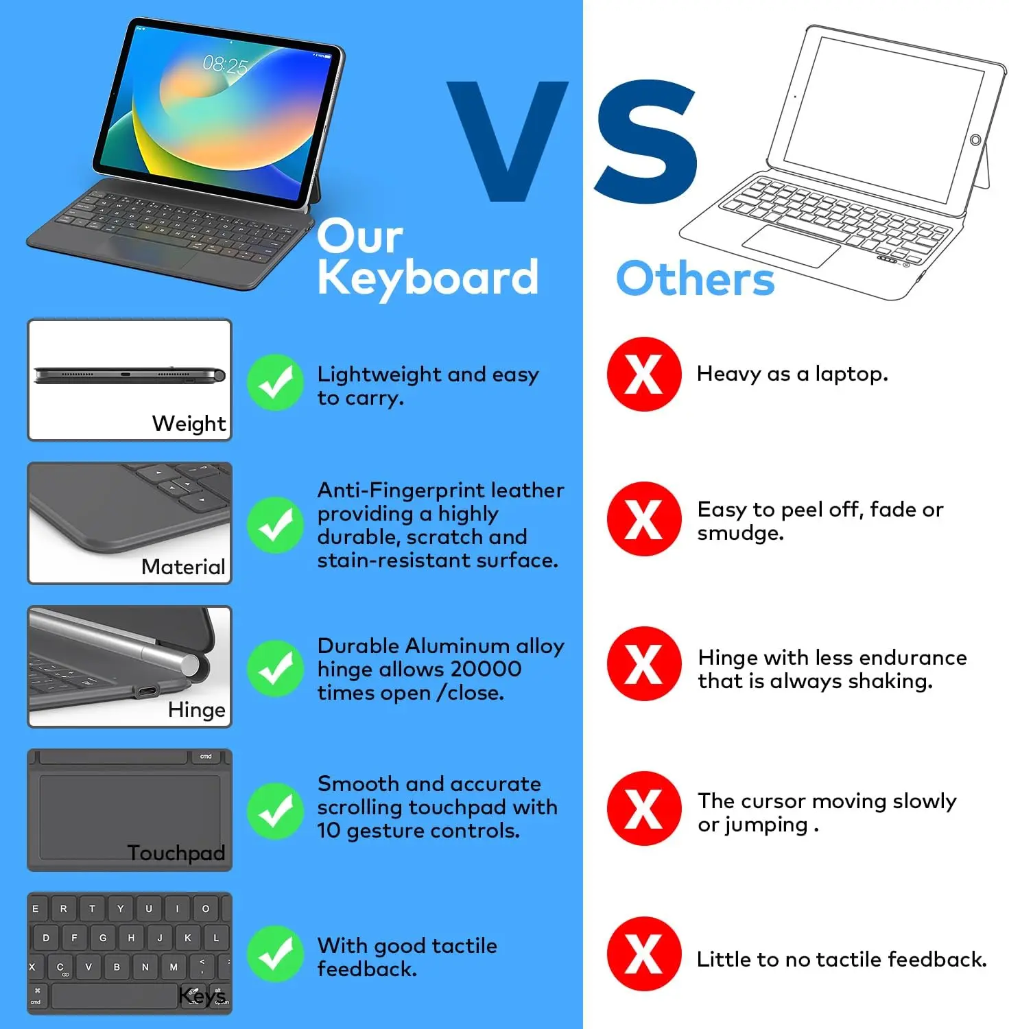 * Multi-Touch Trackpad: It with a built-in precision trackpad that can quickly and easily navigate your iPad. Full multi-touch