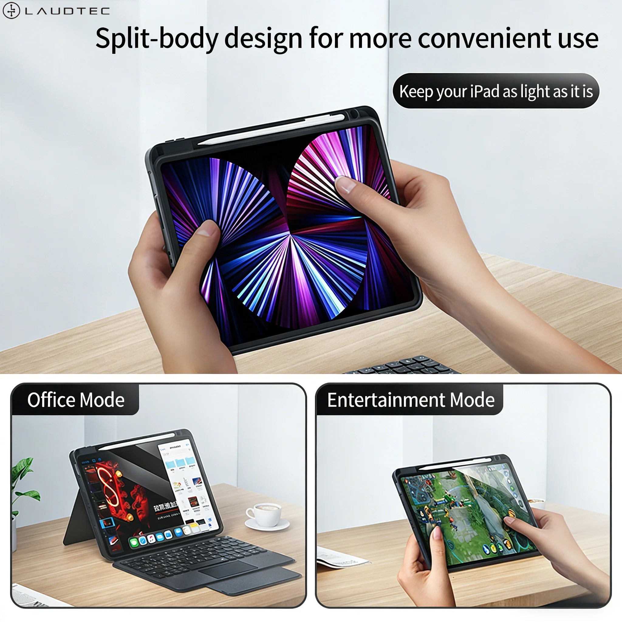 Magic Keyboard for iPad 10/11 Trackpad Stylus Holder Magic Gestures Portrait/landscape Support Sleep/wake Function Backlighting