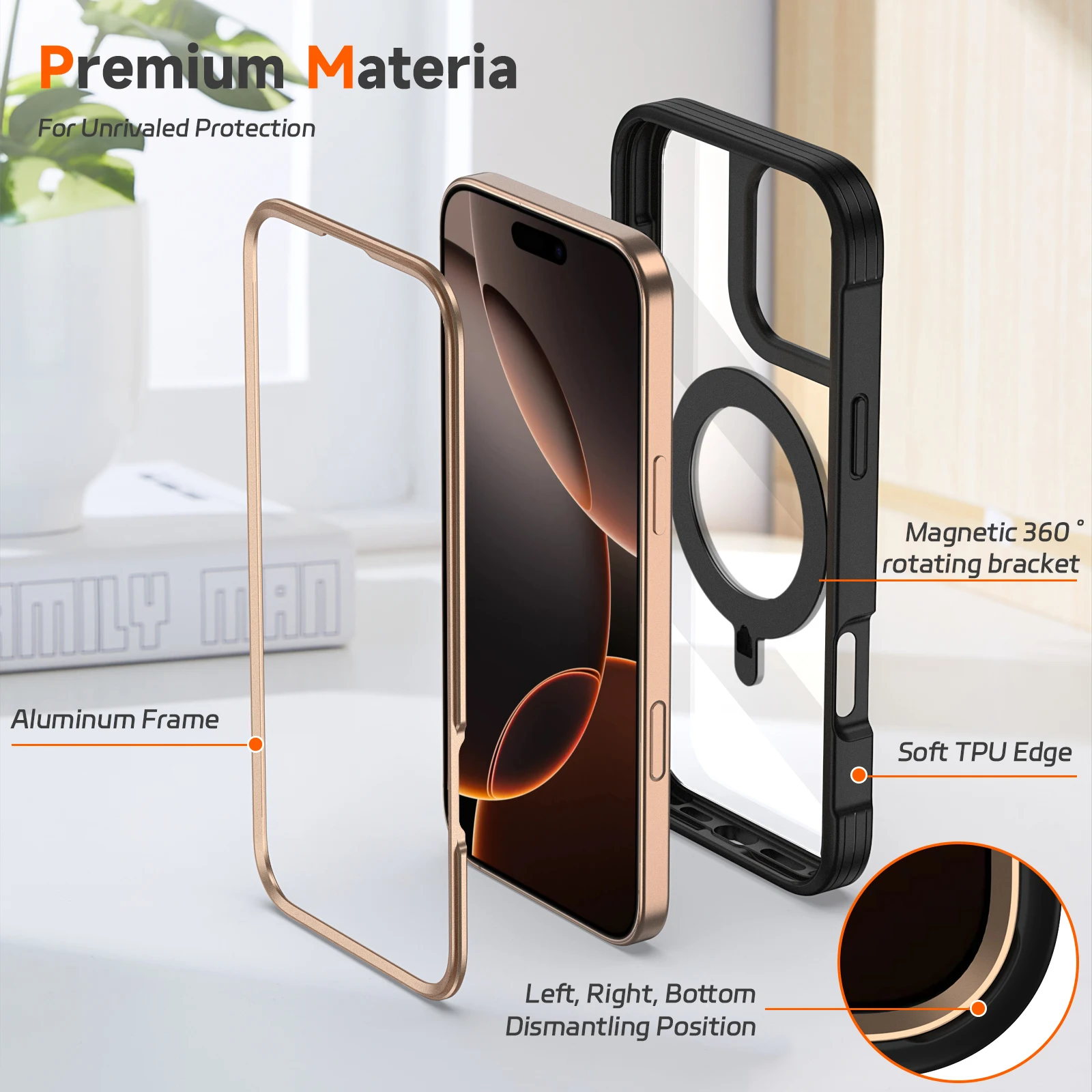 New Aluminum Frame Bumper Magnetic Case for iPhone 17 16 15 Pro Max Shockproof TPU PC Cover Wholesale OEM/ODM/Private Label