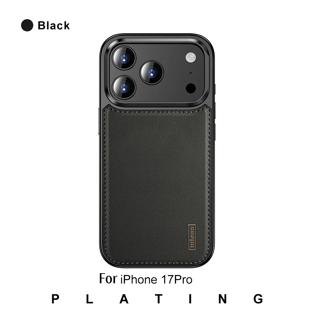 Premium OEM PU Leather Magnetic Phone Case for iPhone 17 Air Pro Max Soft Skin Feel with Foldable Camera Lens Bracket Holder