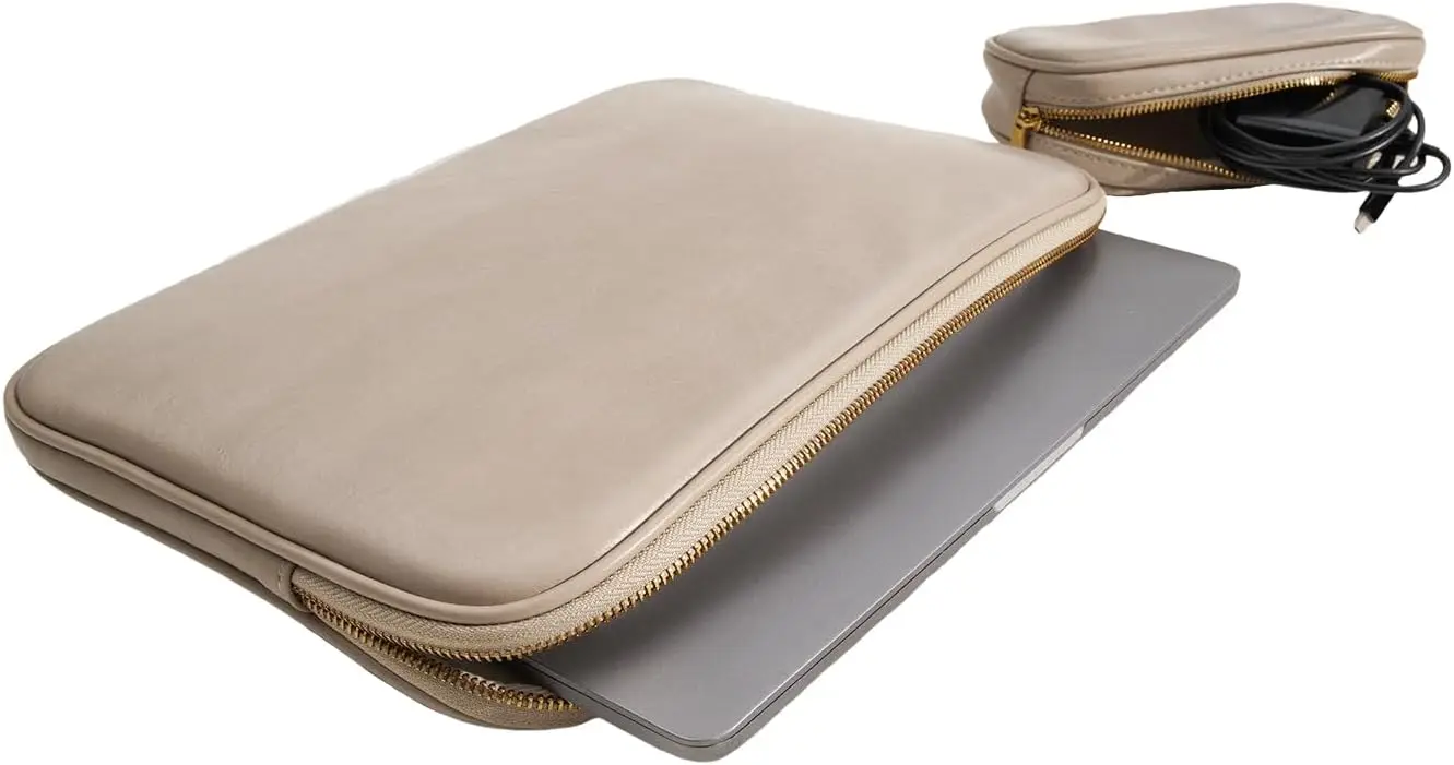 PU Leather Padded Laptop Sleeve Bag 14 Inch for Macbook Air Pro 14 15 Inch Genuine Leather Bags with Accessories Pockets