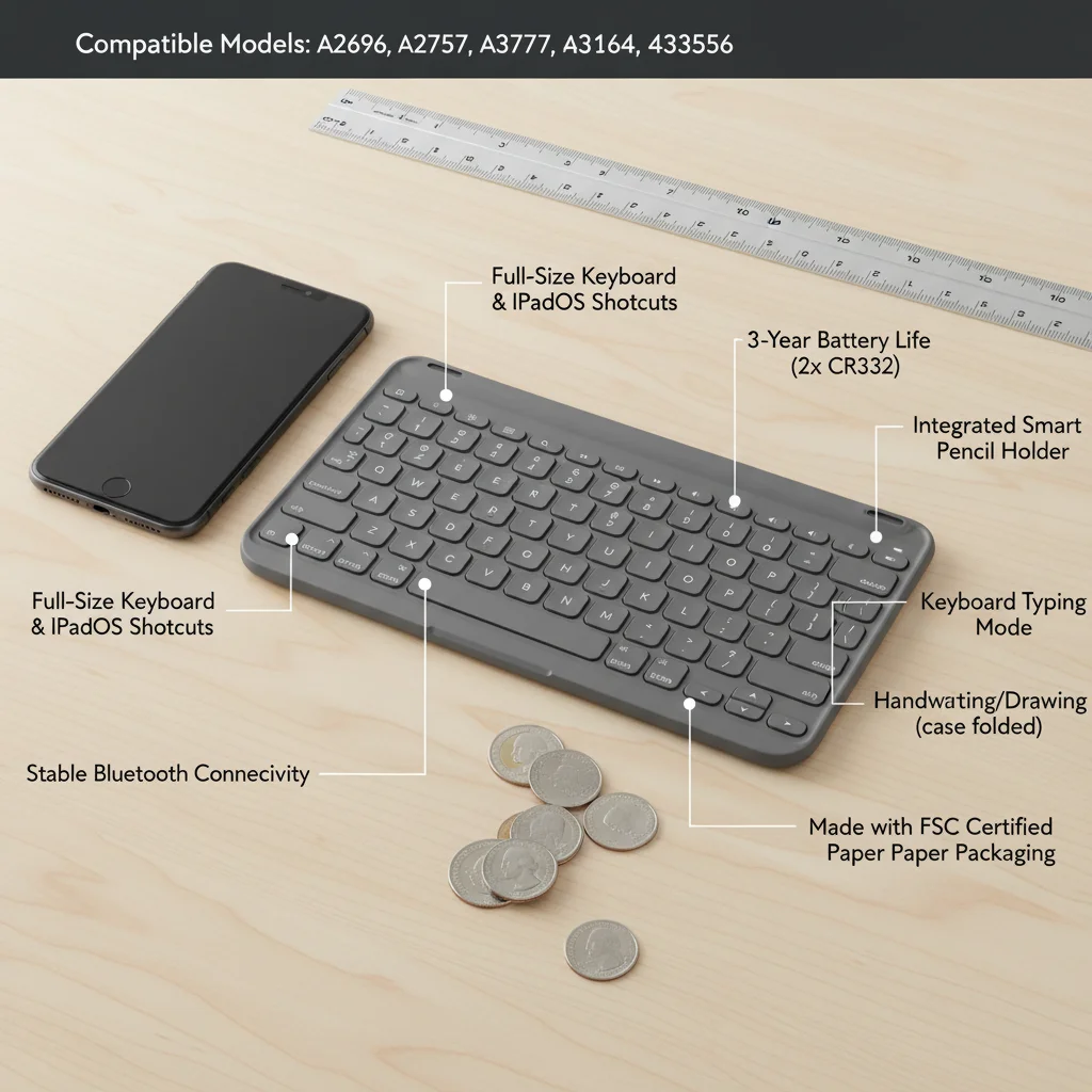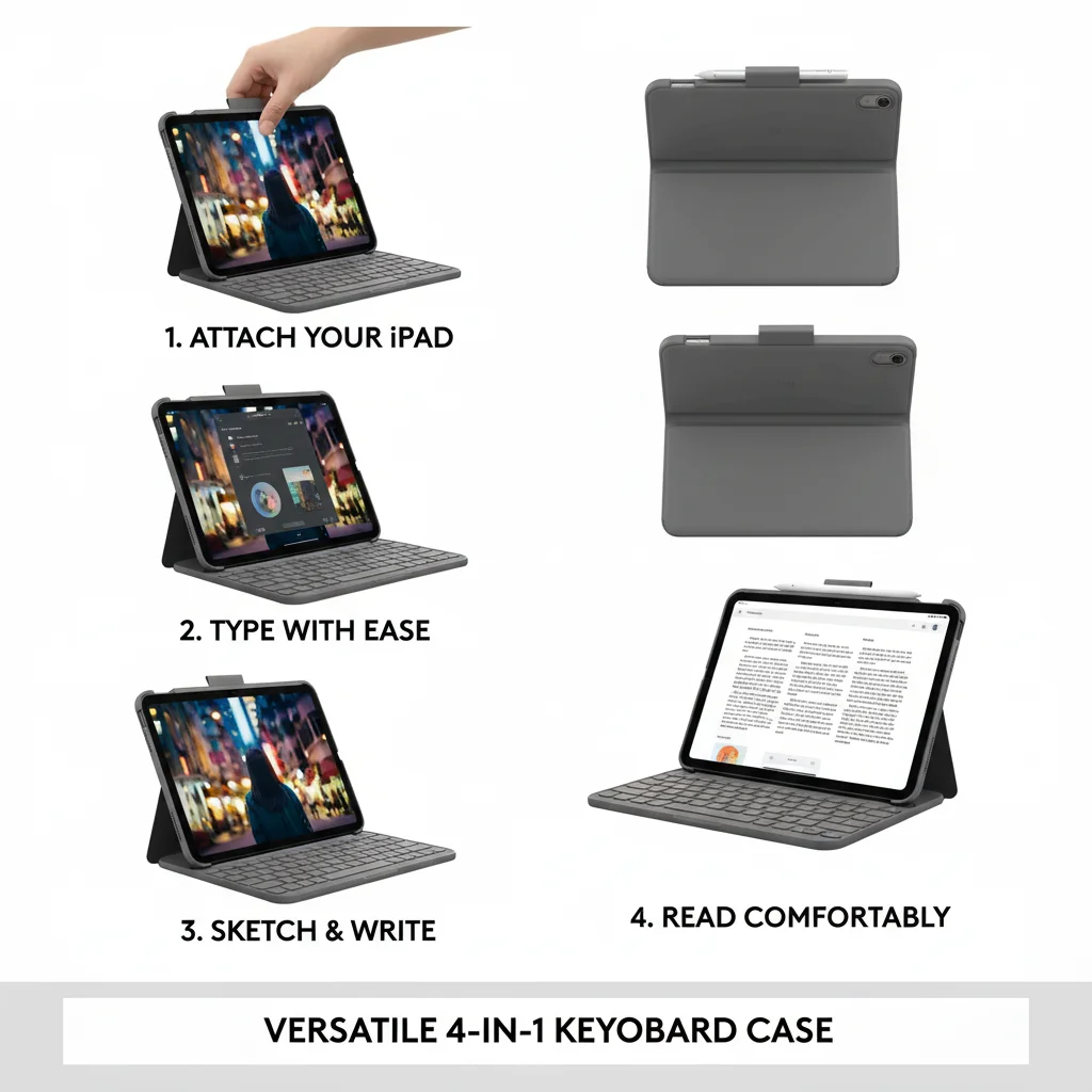 Slim Folio Keyboard Case for iPad (10th gen & A16) with Integrated Bluetooth Wireless Keyboard for iPadOS Shortcuts Laudtec