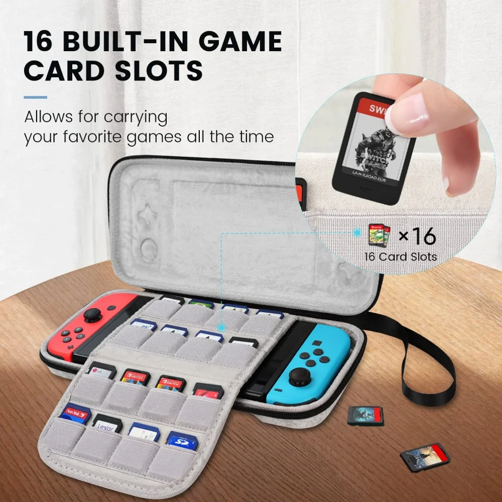 Switch Hard Carrying Case For Nintendo Switch/Switch Oled/Switch Lite Contains 16 Game Cartridges For Travel And Storage Laudtec