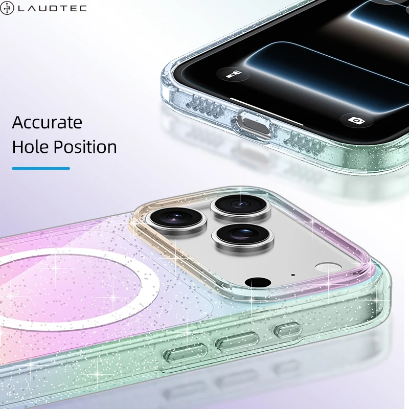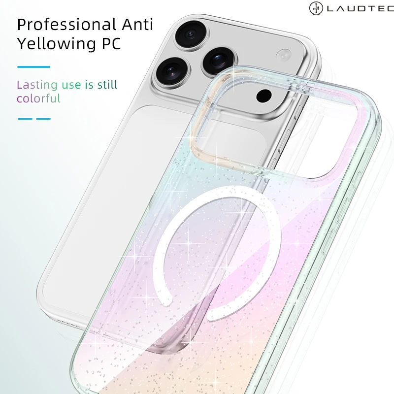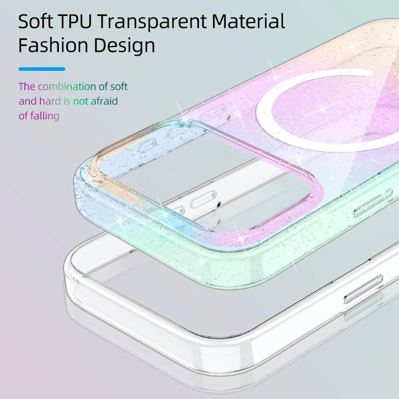 Transparent Magnetic Glitter Ultra-thin Protective case for iPhone 17 Series TPU Shockproof Iridescent Gradient Colors OEM/ODM