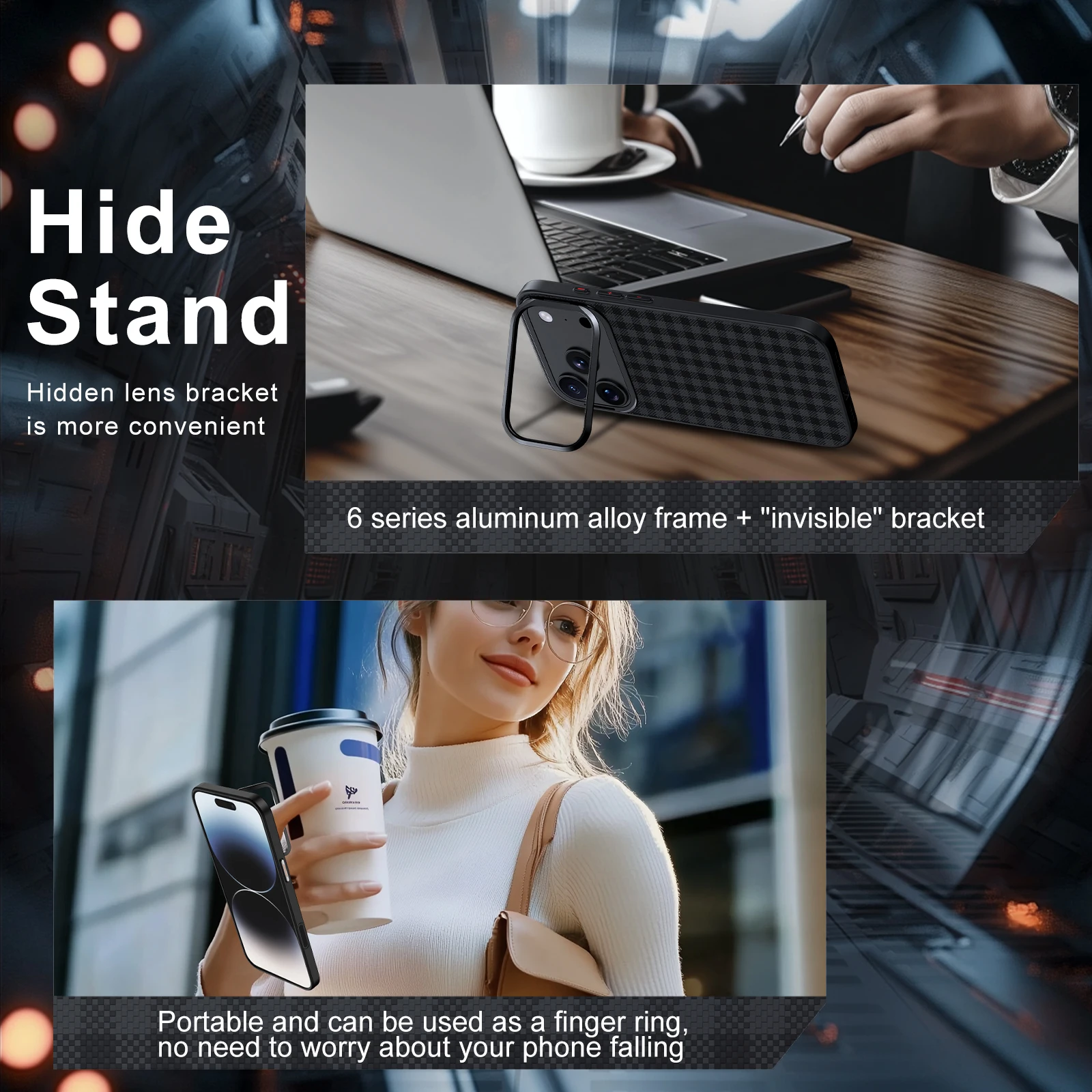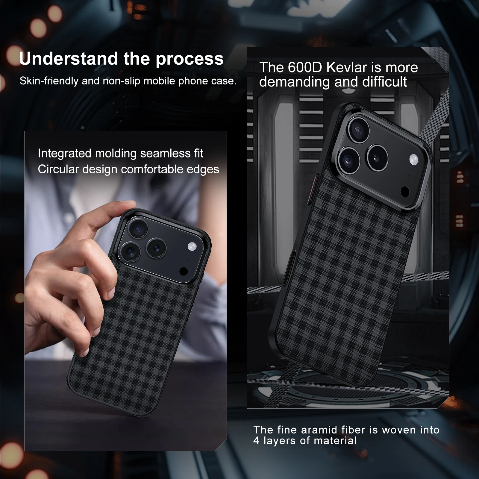 product ultra slim genuine aramid fiber magnetic shockproof hard cover for iphone 17 pro max metal camera lens stand mobile phone case-20