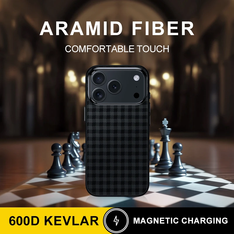 product ultra slim genuine aramid fiber magnetic shockproof hard cover for iphone 17 pro max metal camera lens stand mobile phone case-24