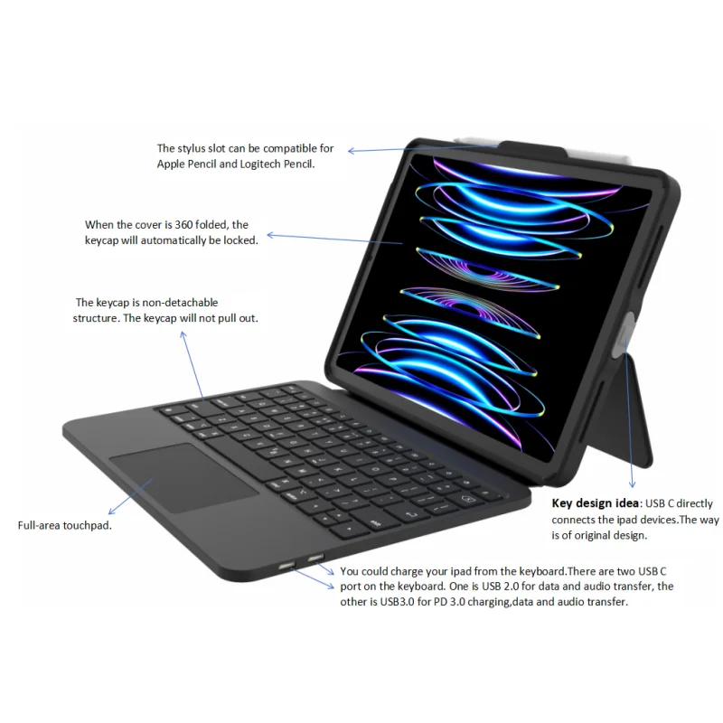 product wholesale wireless keyboard tablet protective detachable case for ipad pro 109 inch magnetic case for ipad pro with pen holster-31