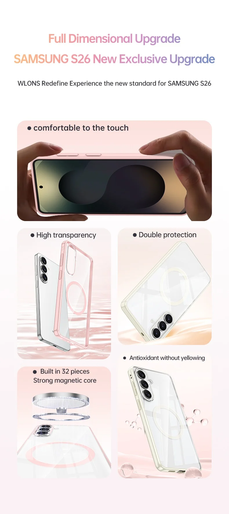 Индивидуальный OEM-чехол высокого качества для мобильного телефона с магнитной фиксацией и защитой объектива камеры для Samsung S26 Ultra; ударопрочный чехол для Samsung S26+