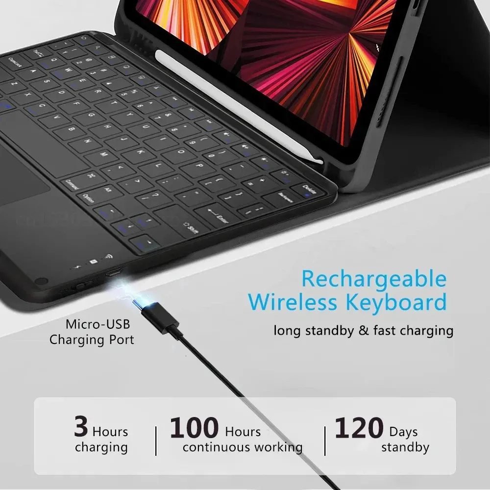 Магическая клавиатура для Samsung Tab S10 10,9'' Plus, подсветка, магнитная съемная клавиатура, несколько слотов для умной ручки Pencil, Laudtec